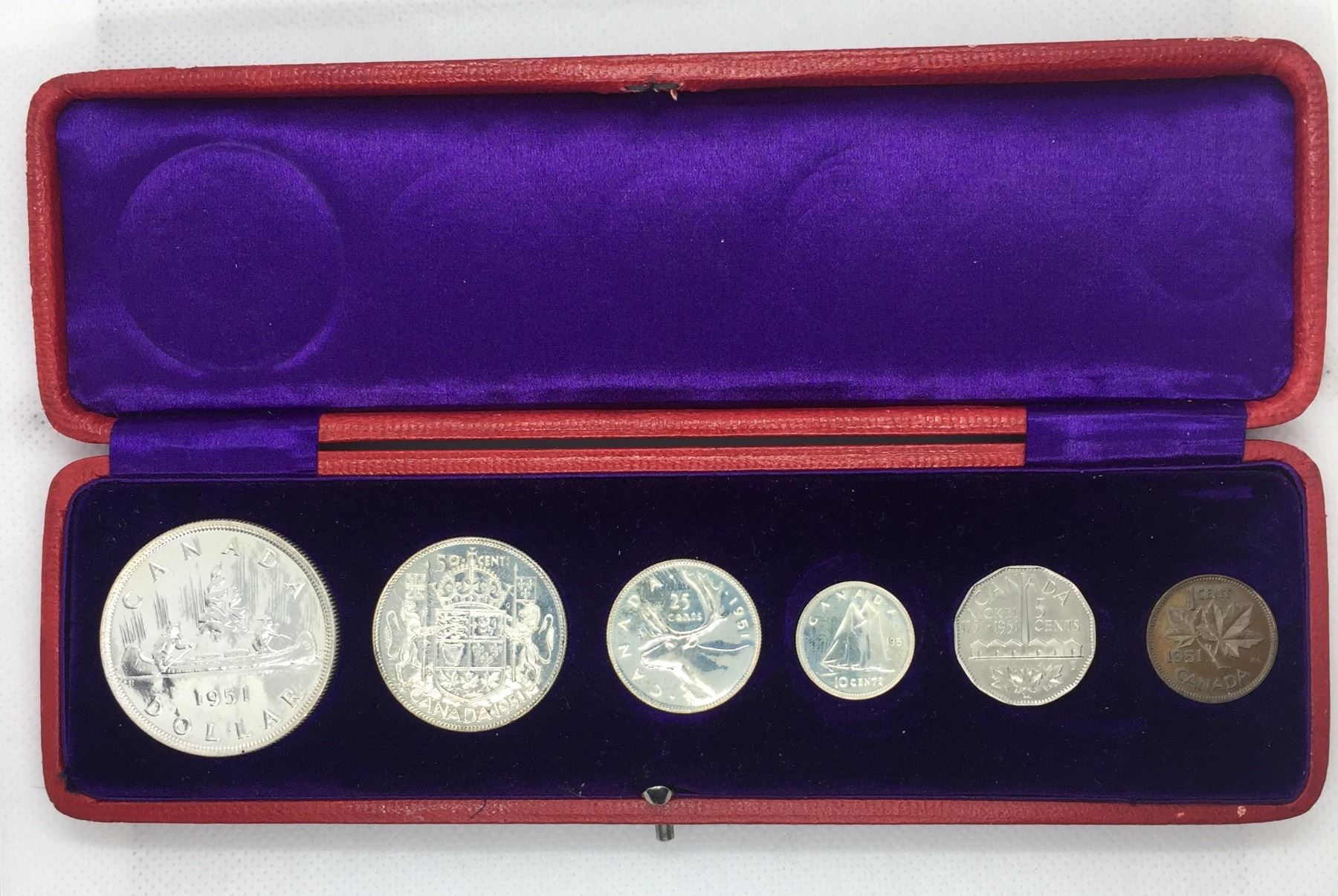 Canada 1951 Specimen Coin Set RARE. Commemorative 5 Cent. In original case of issue.