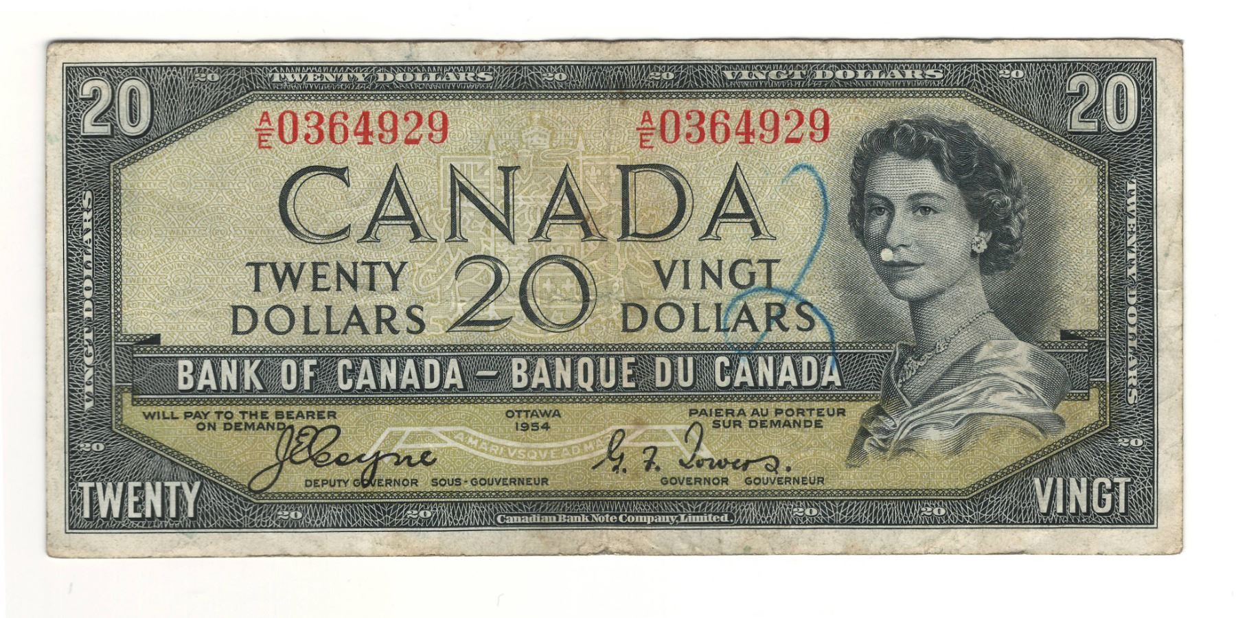 Canada 1954 $20 Devils Hair Banknote Coyne-Towers A/E BC-33a VF Writing