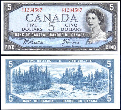 Canada 1954 $5 BC39ai R/C1234567, Unc