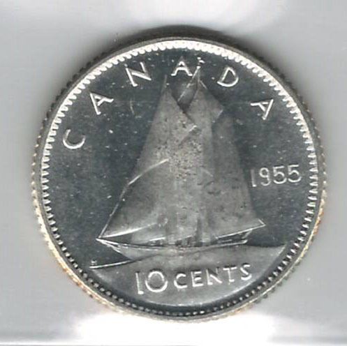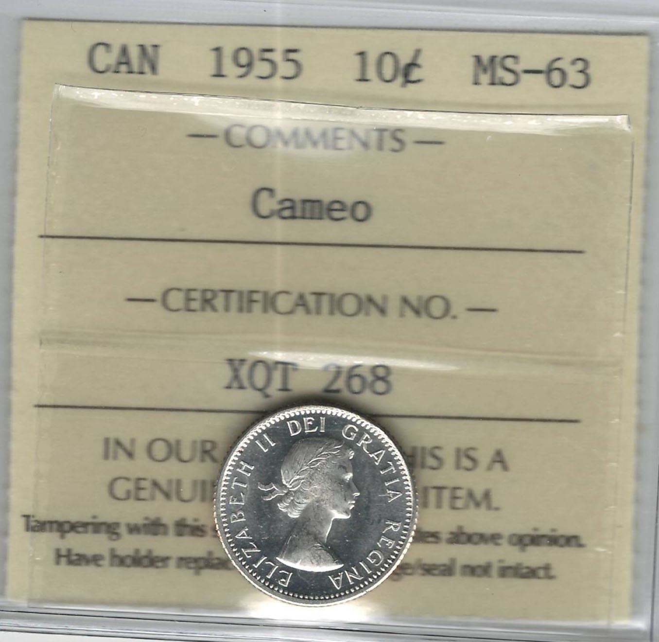 Canada 1955 Silver 10 Cent ICCS MS63 Cameo