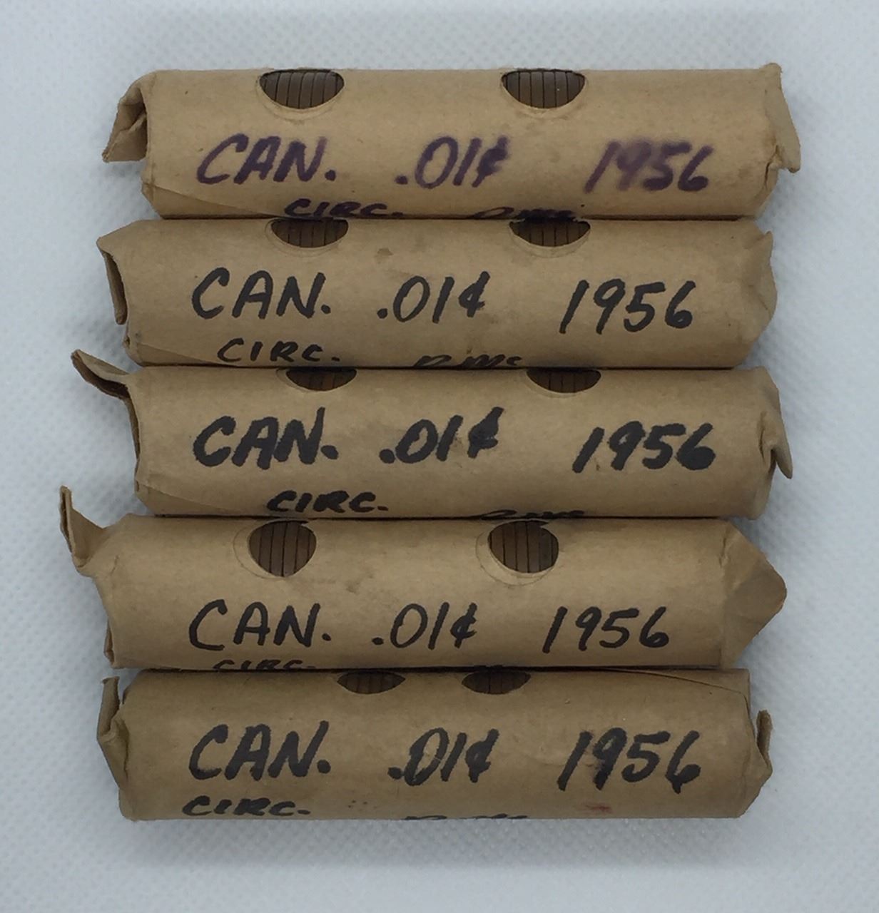 Canada 1956 Circulated Penny Rolls - 5 Rolls