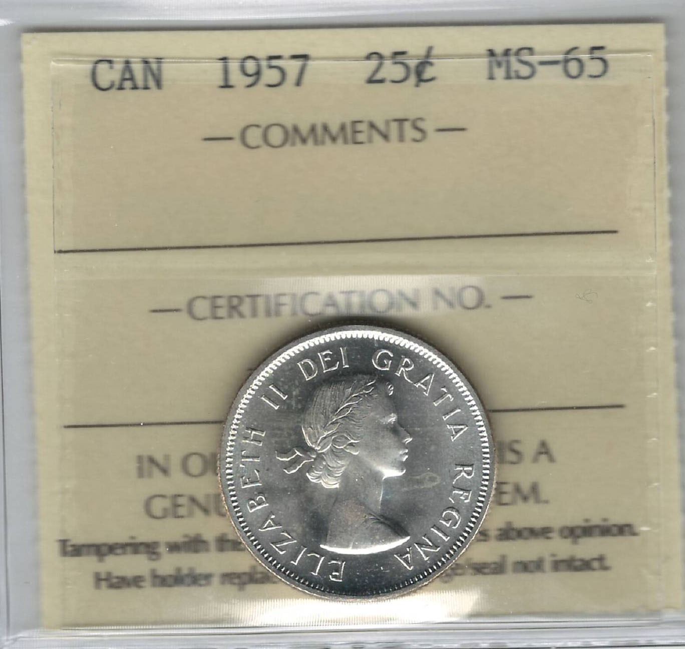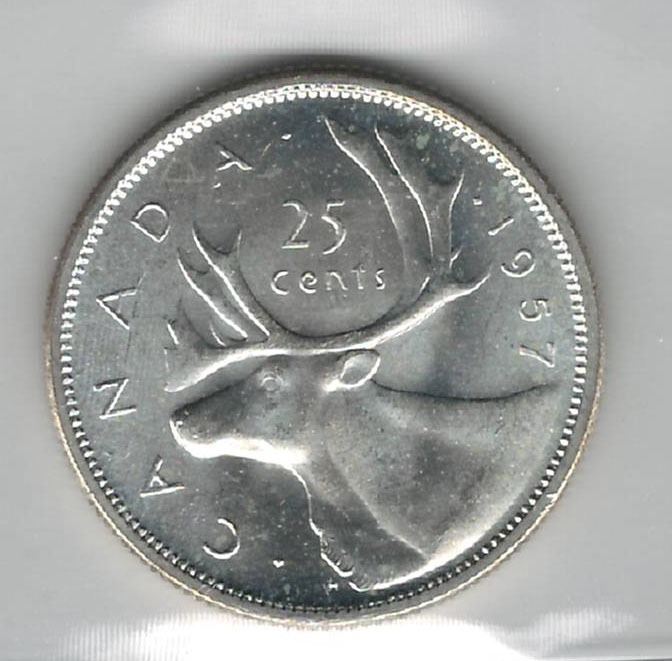 Canada 1957 Silver 25 Cent ICCS MS65