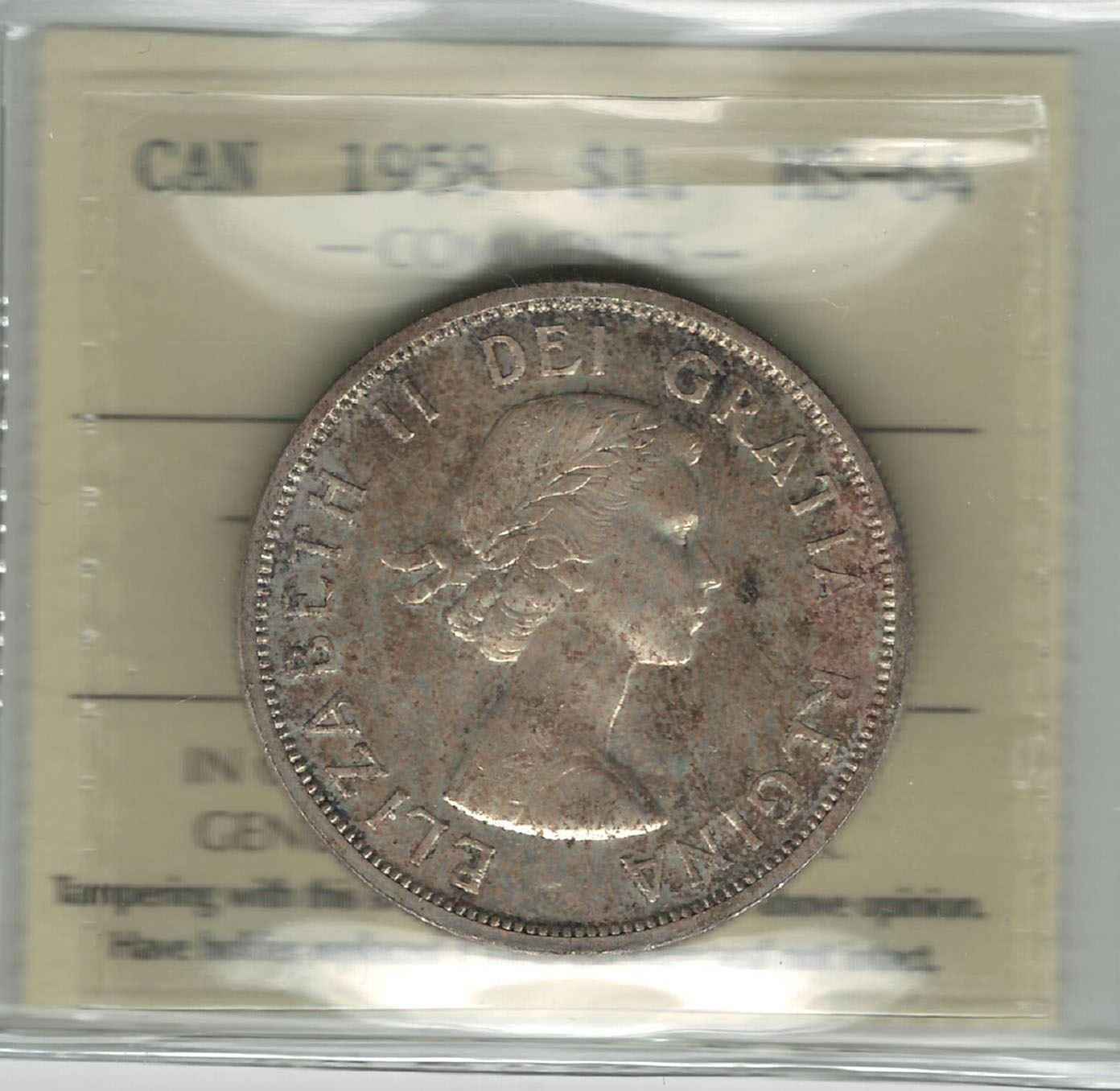 Canada 1958 Silver Dollar ICCS MS64