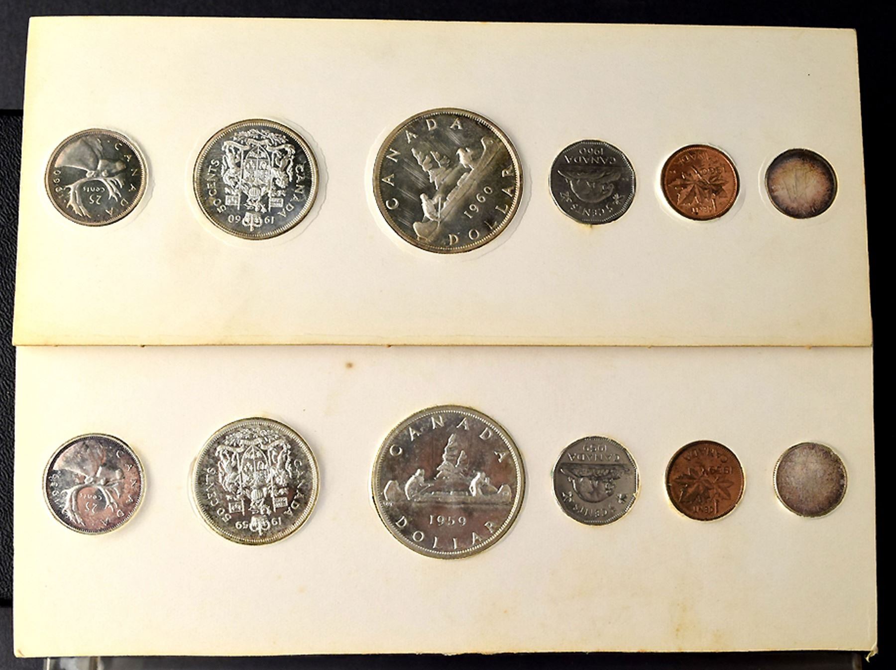 2 complete proof like set of 1959-1960, 6 coins of each. All MS-65++. Catalogue $160 cdn