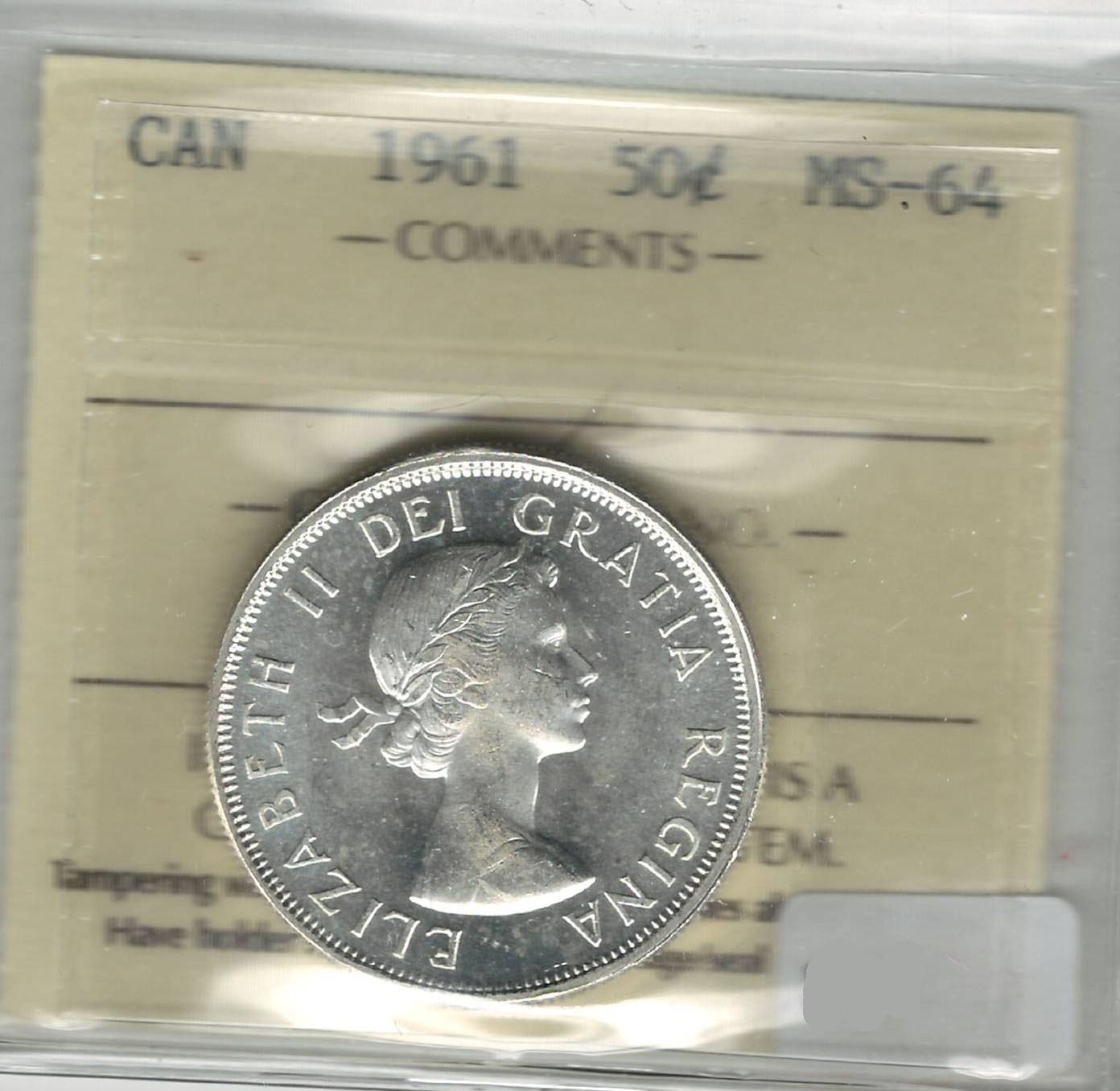 Canada 1961 Silver 50 Cent ICCS MS64