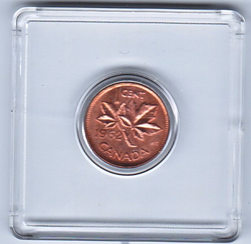 1962 Canadian One Cent Coin; Dramatic Double Date on it; BU-MS Red