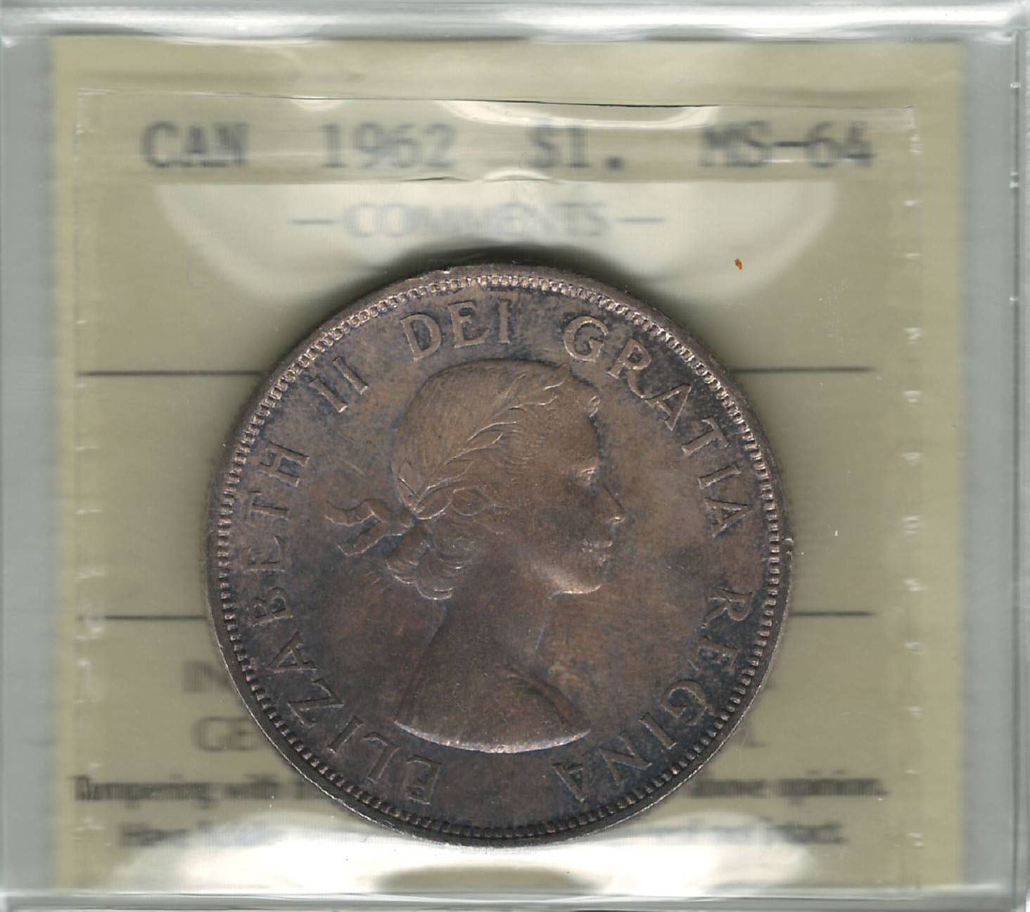 Canada 1962 Silver Dollar ICCS MS64 Toned
