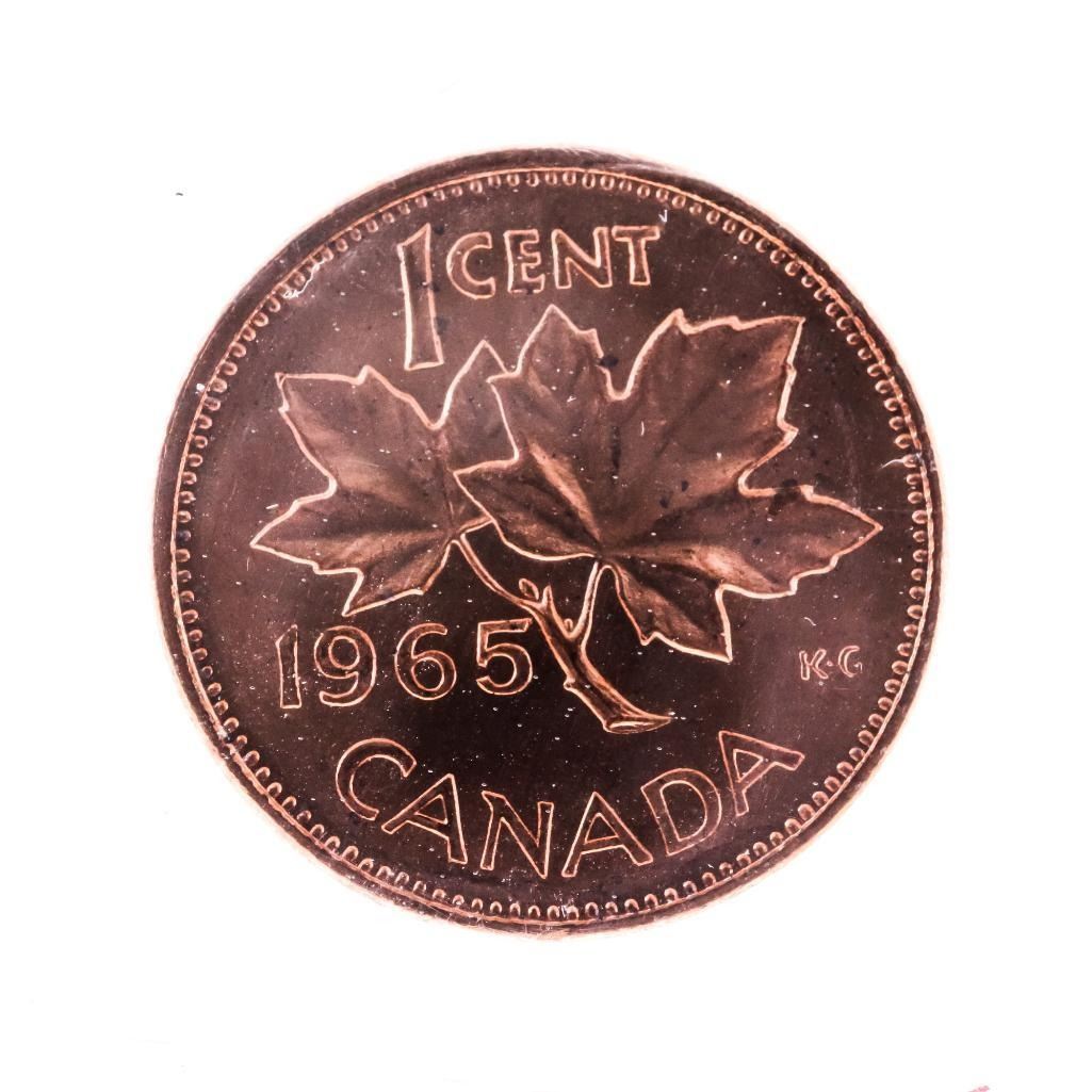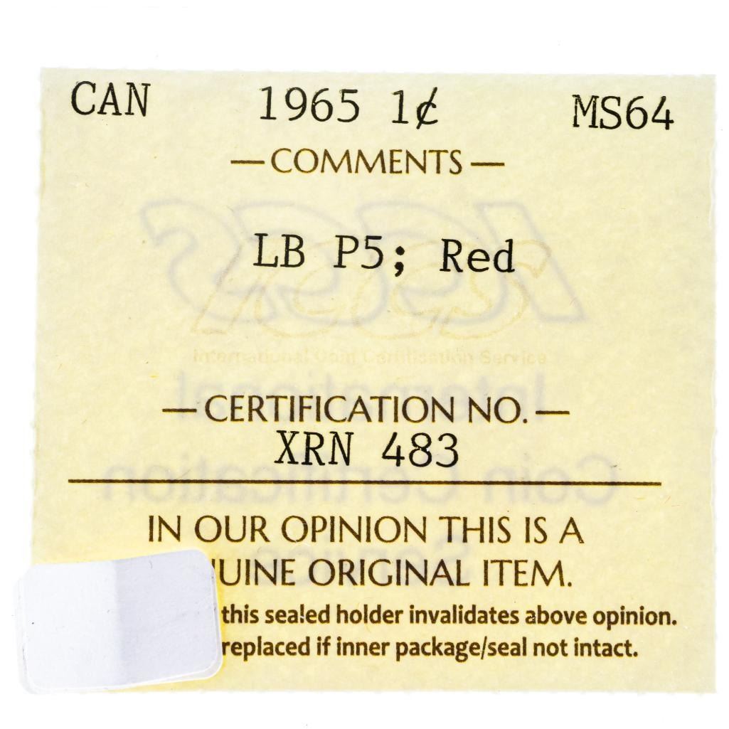 Canada, 1965 One cent Coin MS64 ICCS LB P5;Red