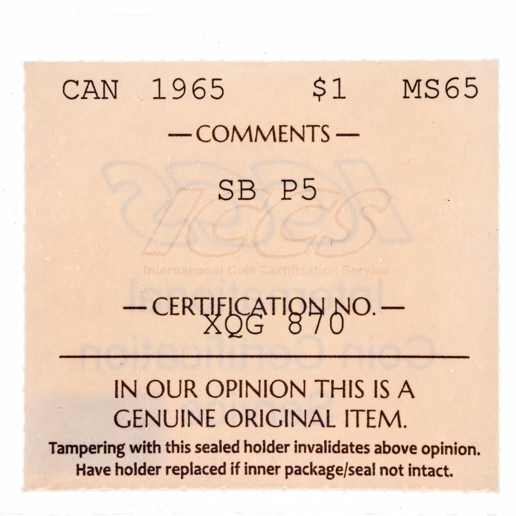 Canada, 1965 Silver Dollar MS65 SB P5 ICCS