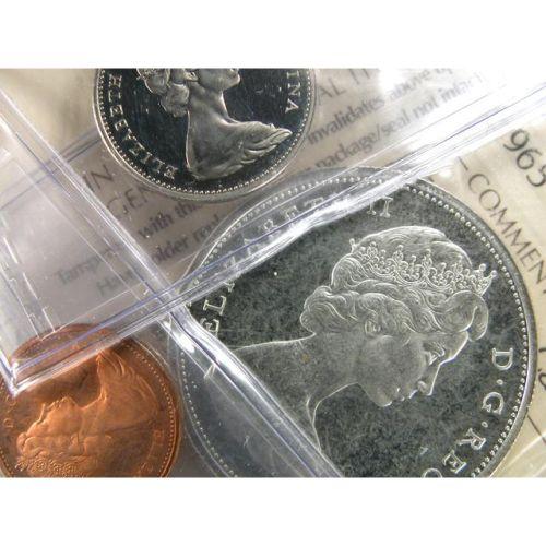 1965 Specimen Set, all ICCS certified. The Type 3 Cent is SP-64 Red, Heavy Cameo, the Five Cents is SP-65 Heavy Cameo, the Ten Cents is SP-65 Cameo, the Twenty-Five Cents, Fifty Cents and the Dollar are SP-66 Cameo