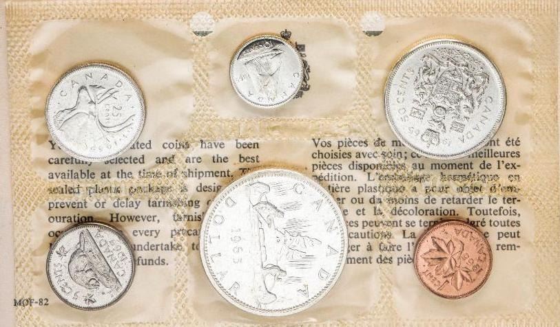 Canada 1965 Type 3 Scarce Proof Like Set Ptd. 5 1.1 oz. ASW