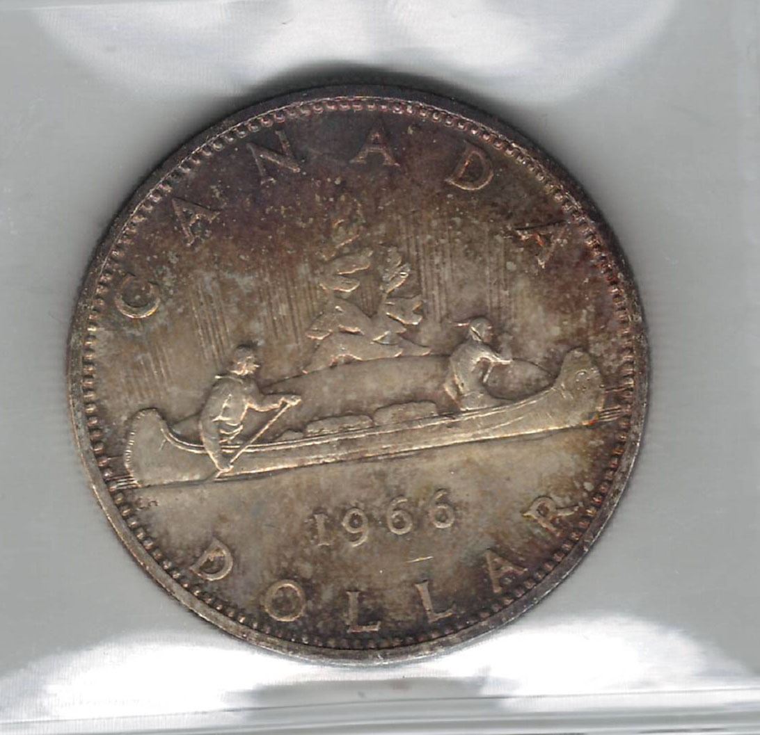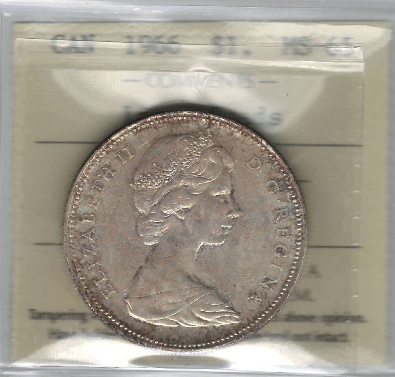Canada 1966 Large Beads Silver Dollar ICCS MS65 Toned