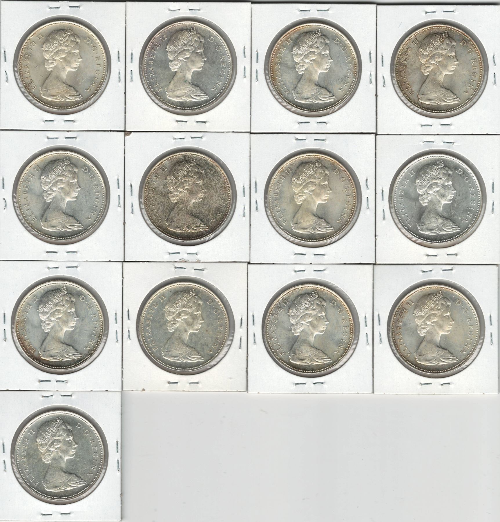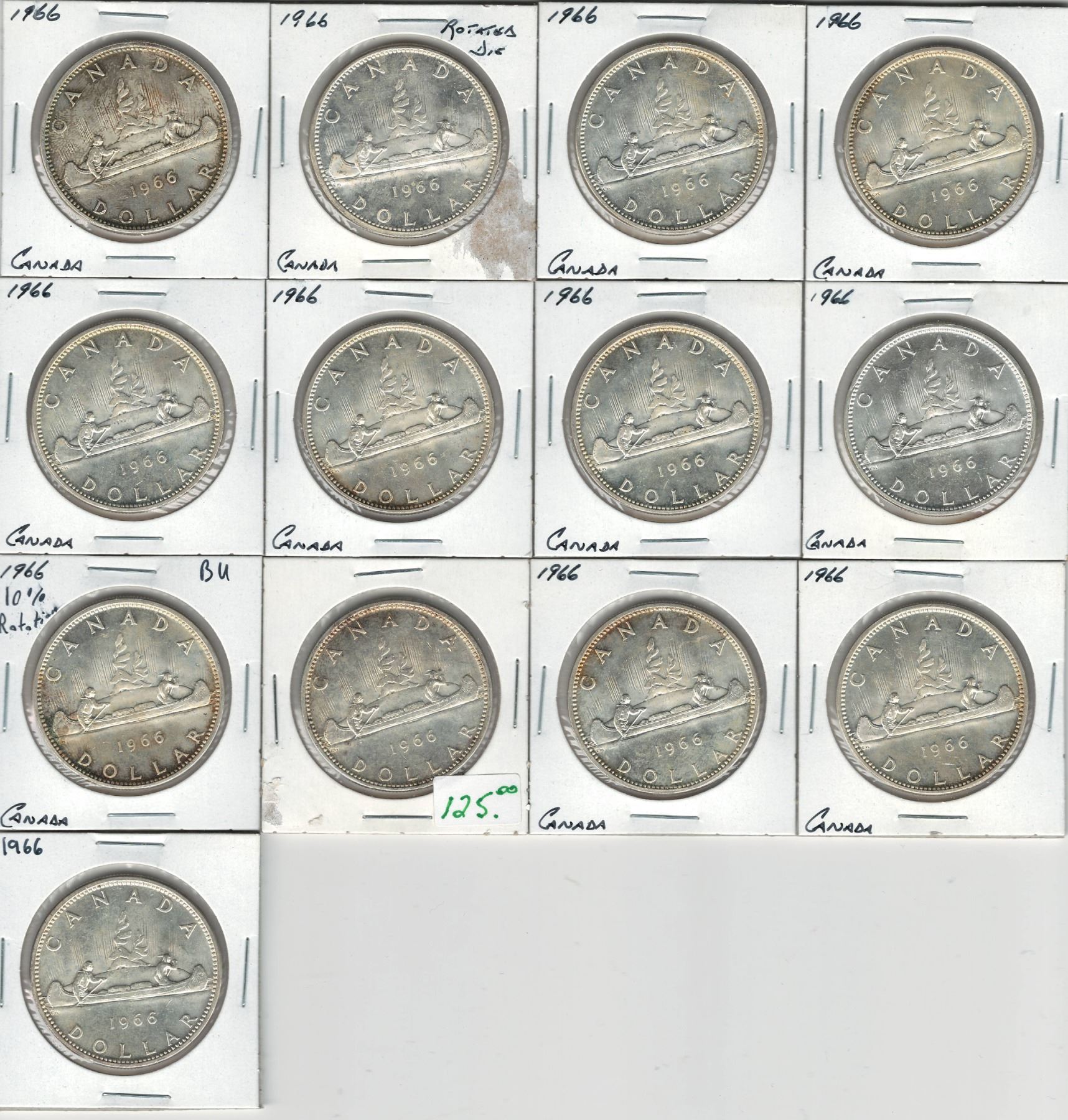 Canada 1966 Silver Dollar Minor Rotations BU (13 pcs)