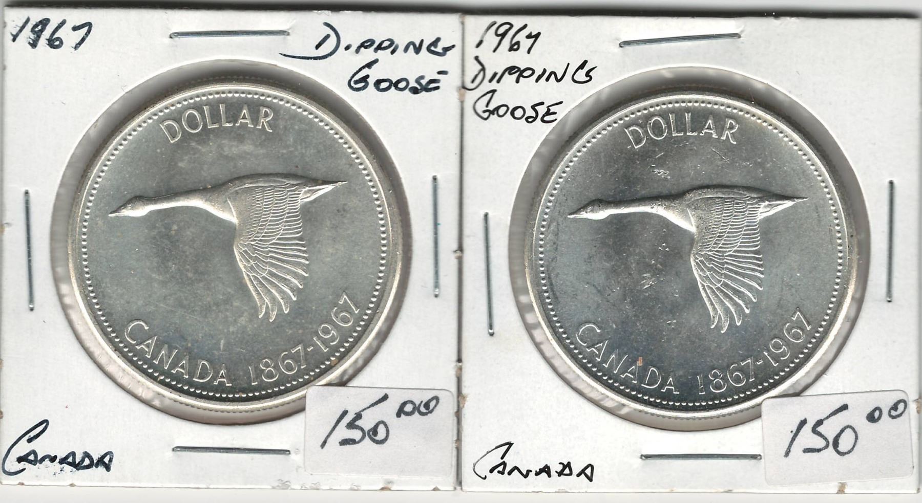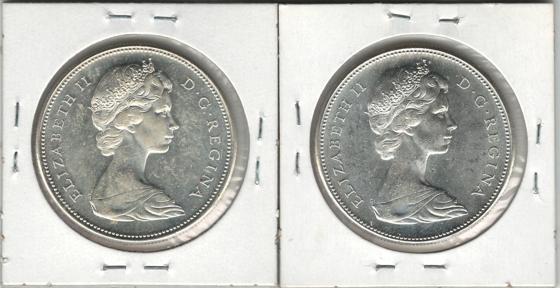 Canada 1967 Silver Dollar Lot Minor Rotations BU (2 pcs)
