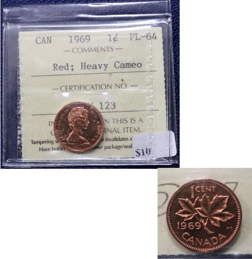 Canada 1969 1-cent ICCS Certified PL-64 Red; Heavy Cameo