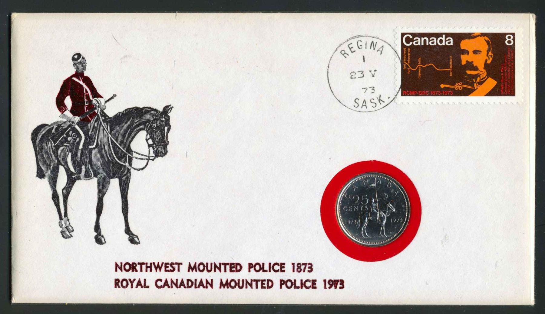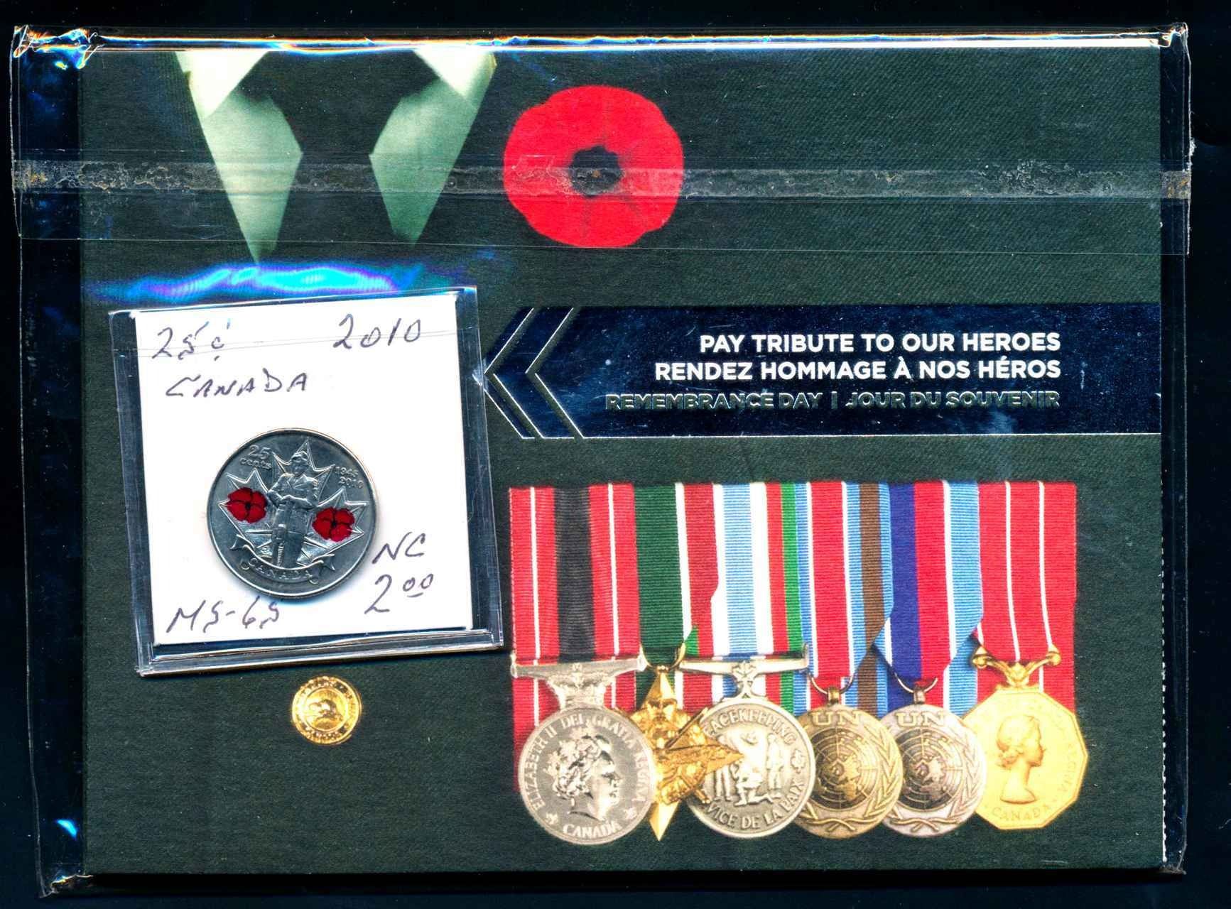 1 x 1973 First Day cover and .25 RCMP issue, 1 x 1973 First Day cover and metal stamp Curling, 1 x 2004 Year Set 400th. Anniversary of First French Settlement Collector Card, 1 x 2008 First Day Mintage Snowboarding, 2 x 2010 Tribute to Heros .25 cents in MS-65 (one is special sleeve), 1 x 2006-2010 Keep the Change Circulation Coinage and 2008-2010 Olympic and Paralympic Winter Games coin collection. Over $15.00 Face Value.