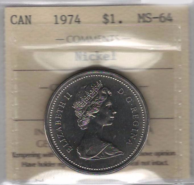 Canada 1974 Dollar Double Yoke #4 ICCS MS64