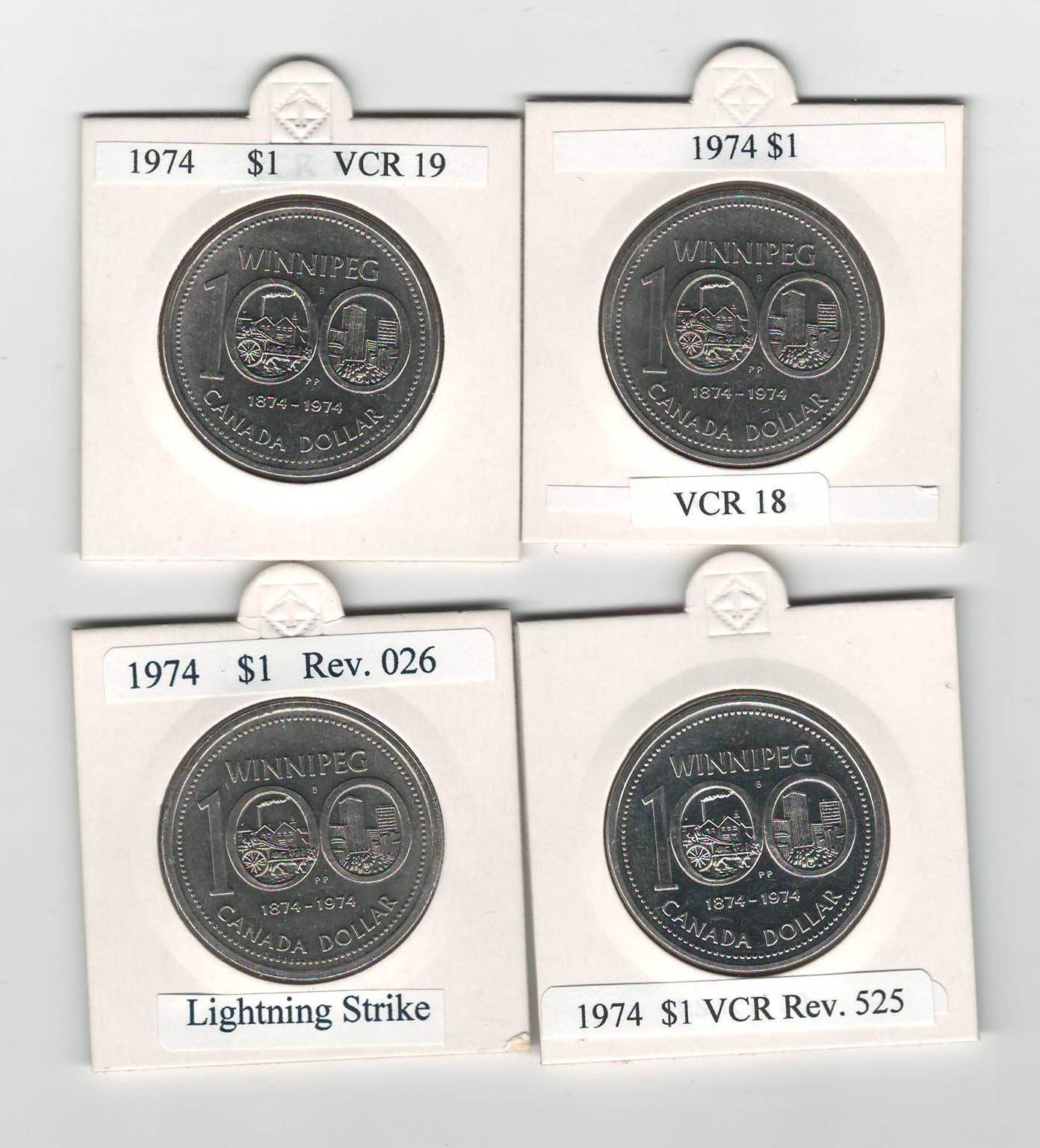 Canada 1974 Nickel Dollars. Lot of 4 Different Varieties. VCR18, VCR 19, REV 026, & REV 525