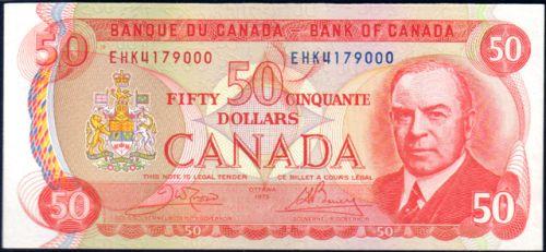 1975 Fifty Dollars Crow-Bouey, BC-51b Three Consecutive Serial Numbers EHK4179000 to 002, all Certified PMG Gem Uncirculated 66, Exceptional Paper Quality