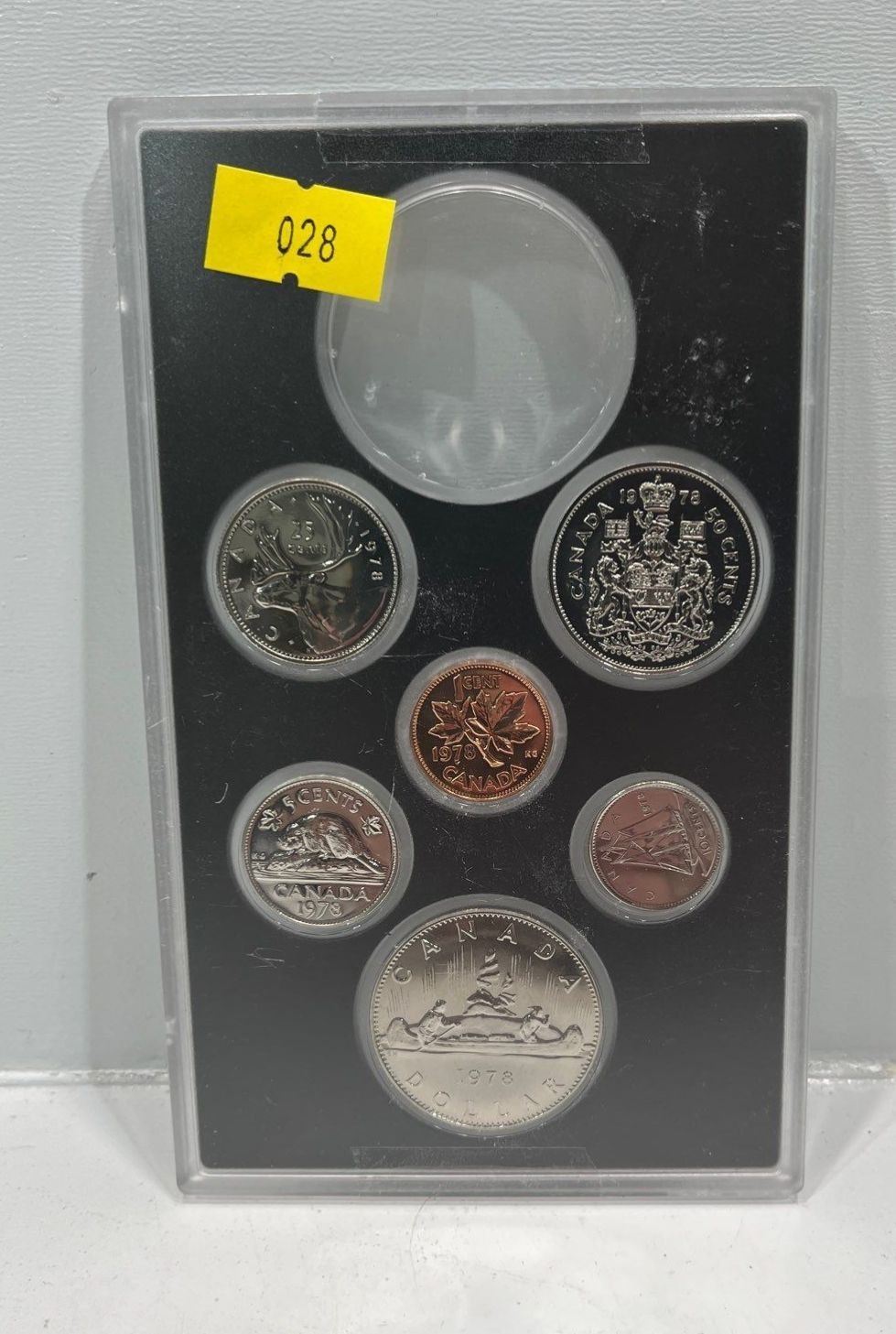 1978 Canada 6-coin Frosted Proof Set broken from the official Proof Double Dollar set issued by the RCM. You will receive the coins in the hard snap-lock case without the commemorative silver dollar (has been removed)