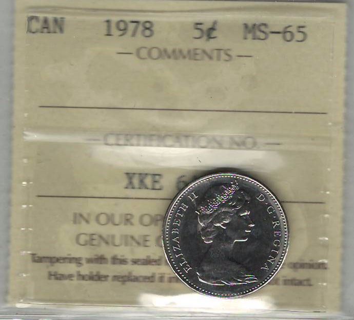 Canada 1978 Nickel 5 Cent ICCS MS65