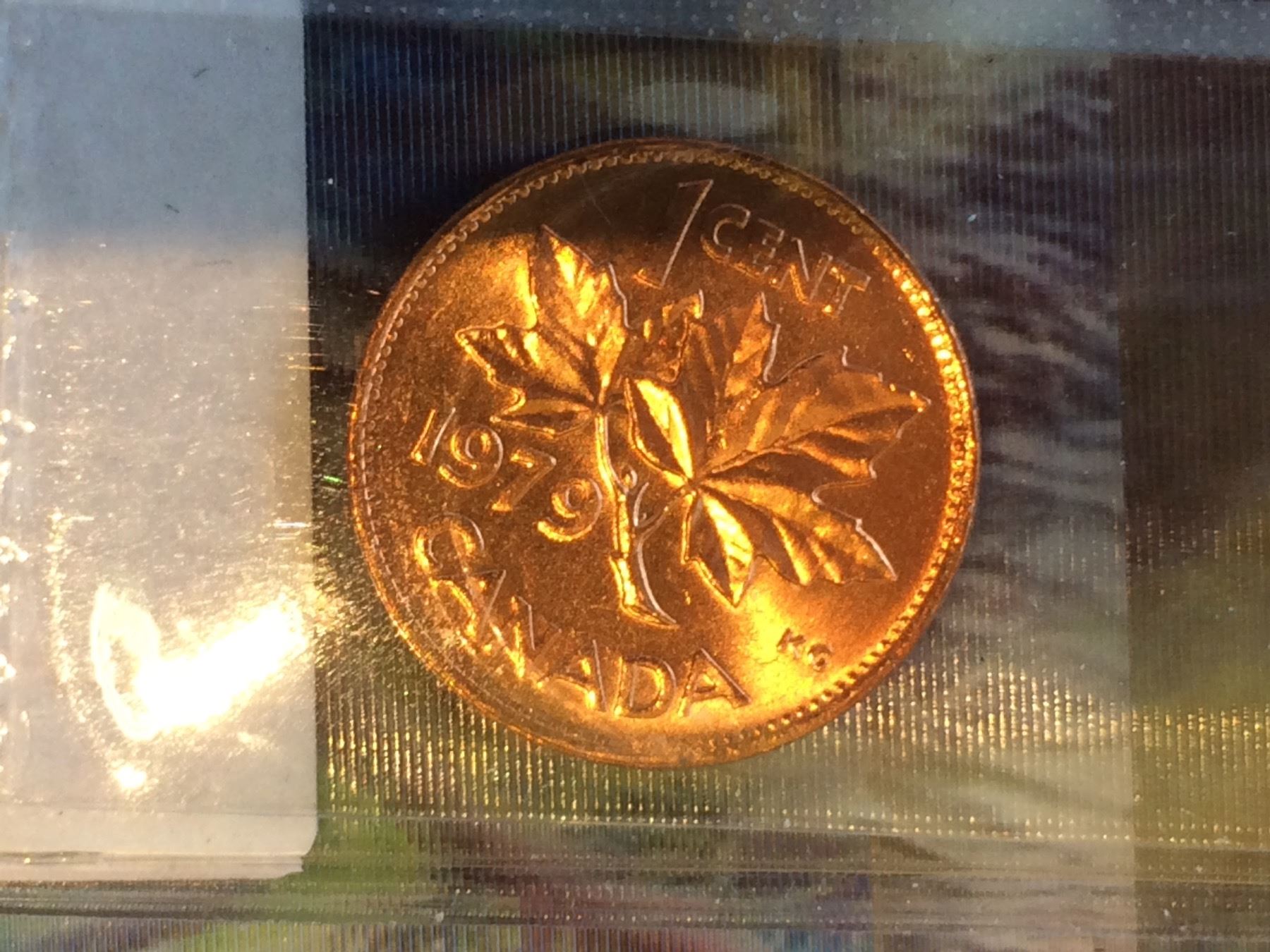 Canada 1979 ONE CENT MS-65, RED. DOUBLE 79, DIE ROTATION