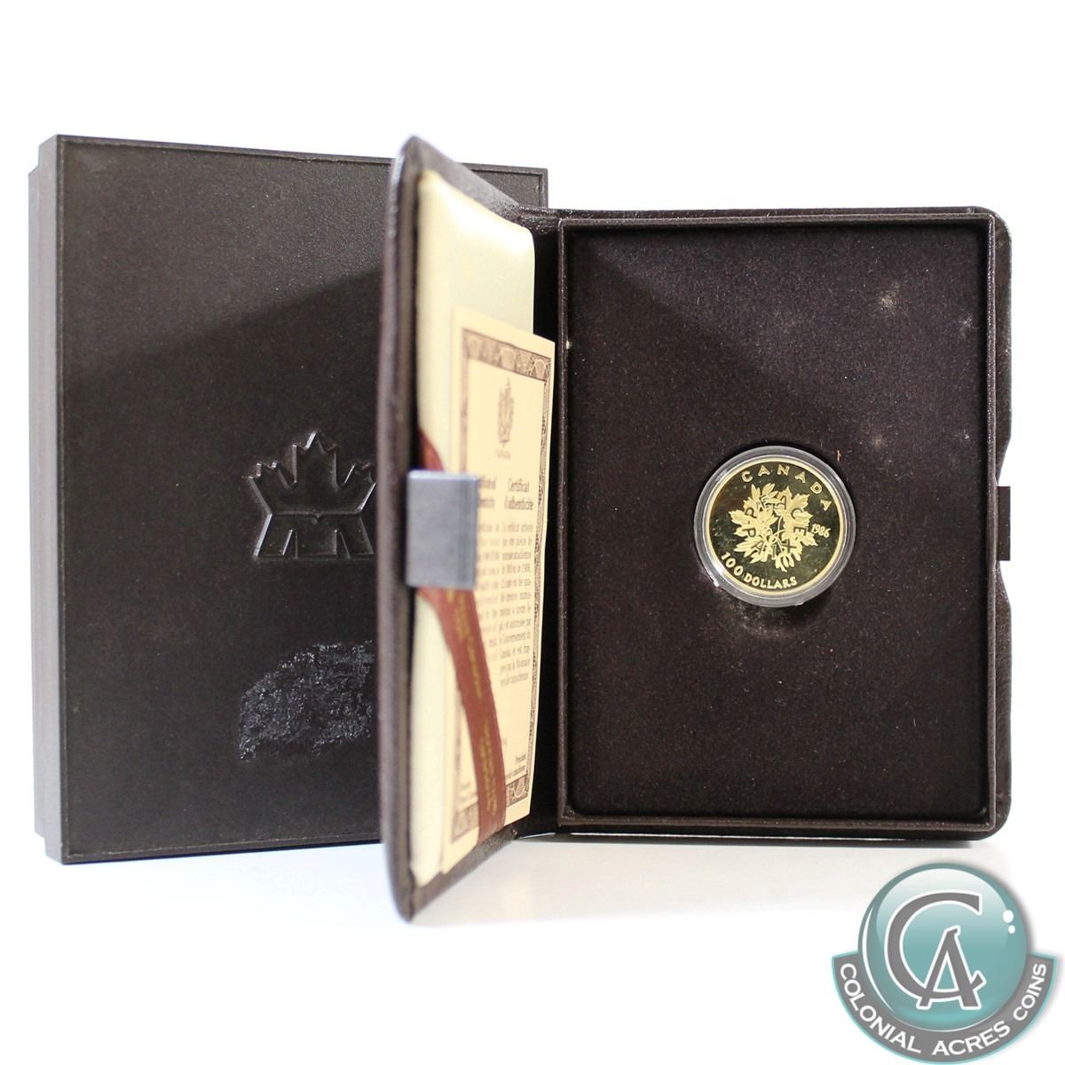 Canada 1986 Canada $100 International Year of Peace 22k Gold Coin in Original Box with COA.