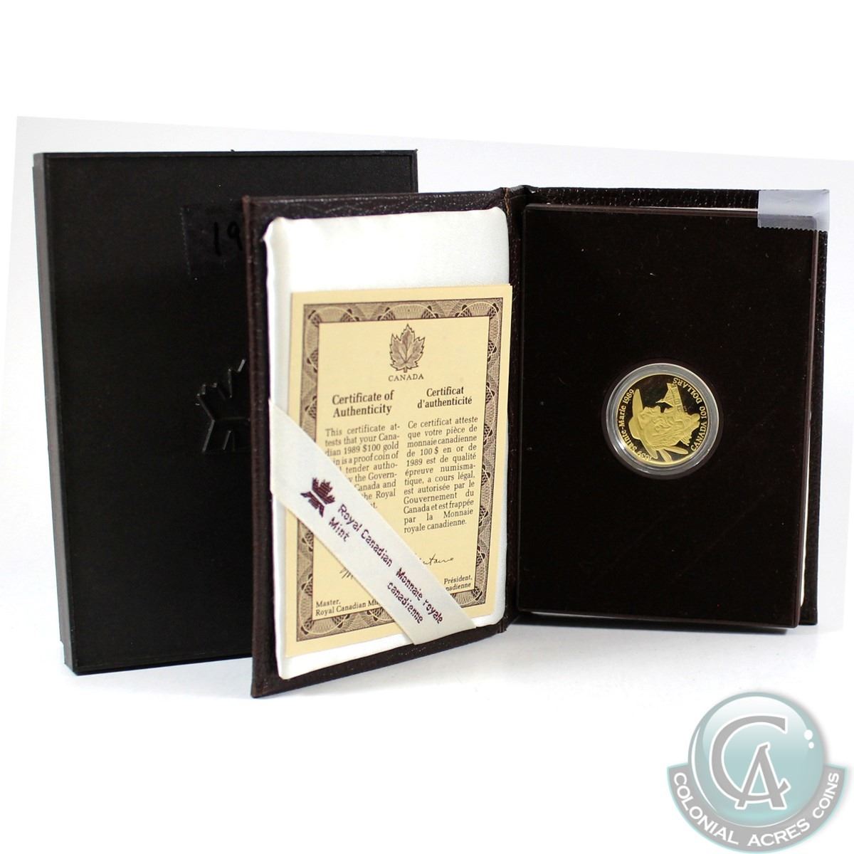 Canada 1989 $100 Sainte-Marie 14K Gold Coin. Comes in original packaging with COA. Coin contains 0.250oz of Pure gold.