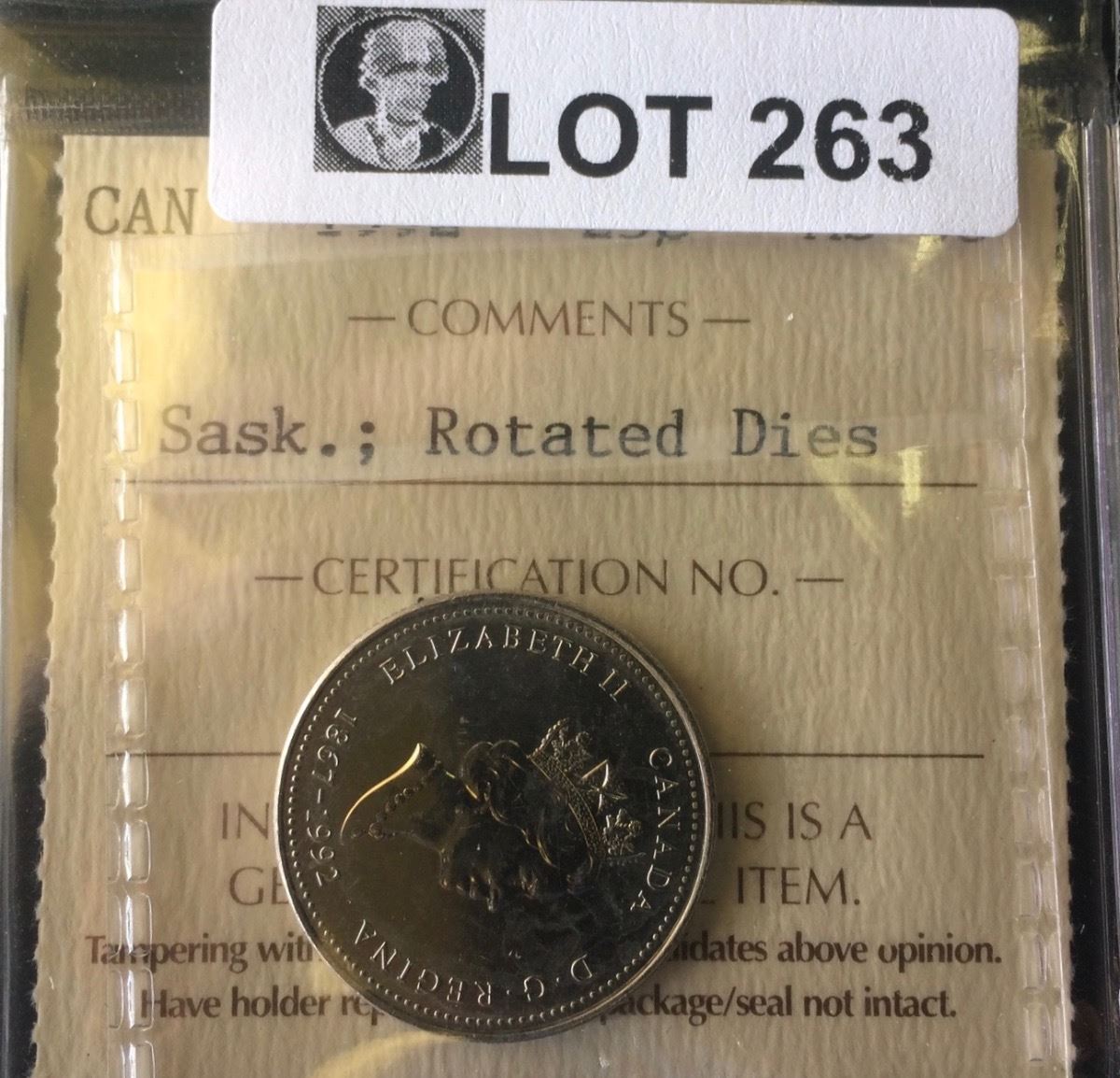 Canada 1992 25 Cents Saskatchewan; Rotated Dies, MS-63 RARE COIN ICCS