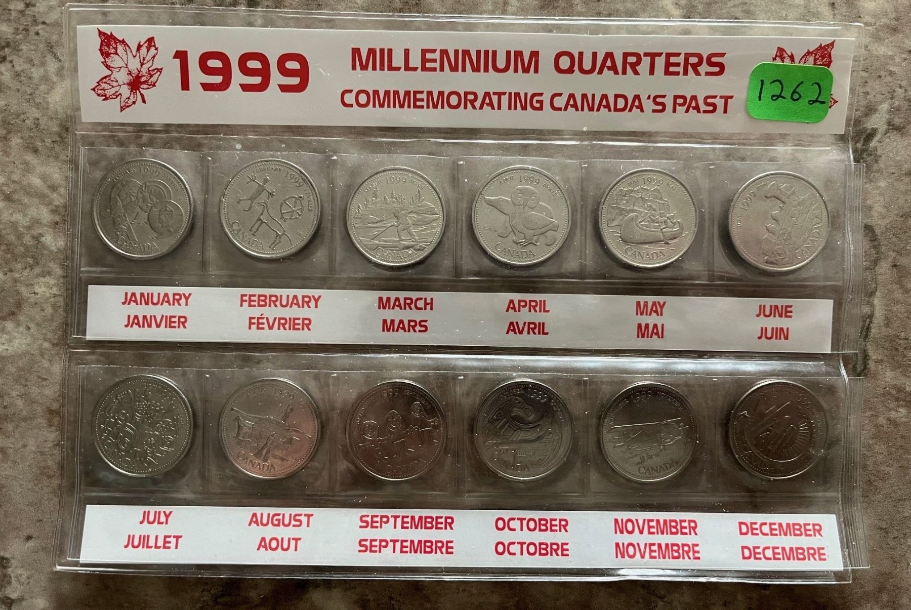 Canada 1999 Millennial Set of 12 quarters in commemorative pouch sleeve.
