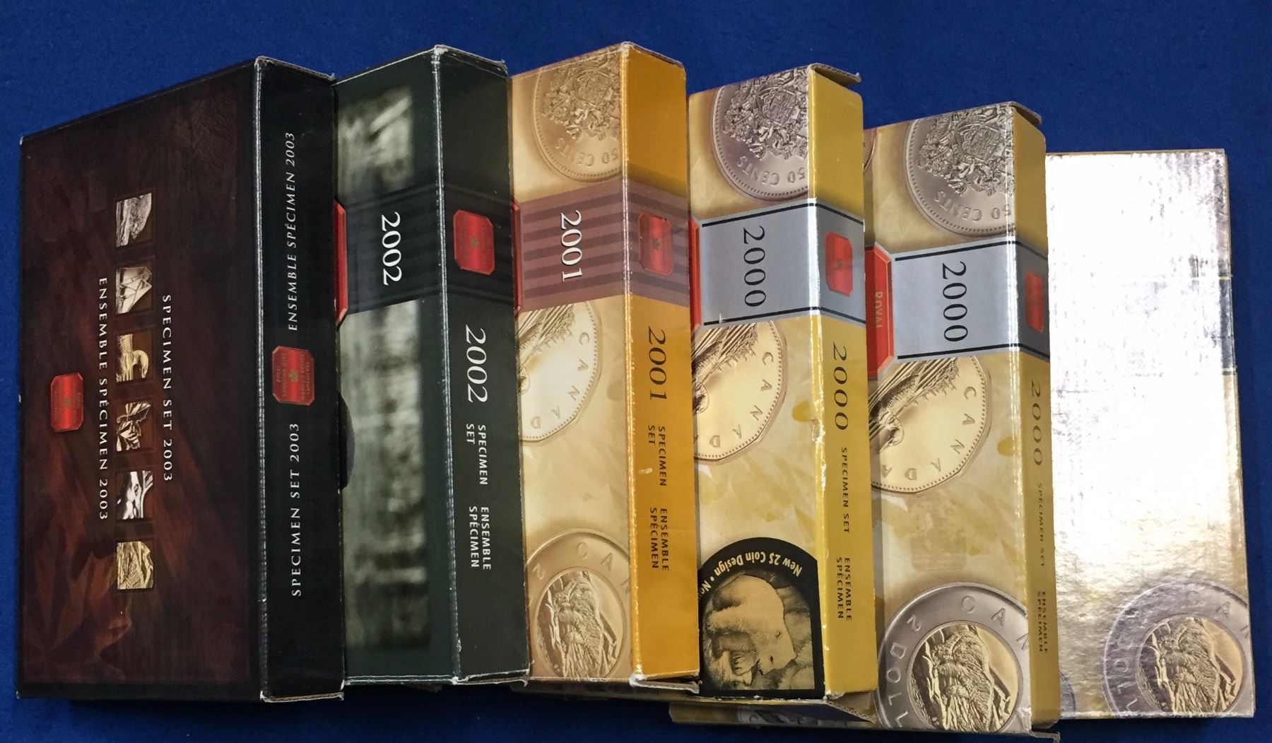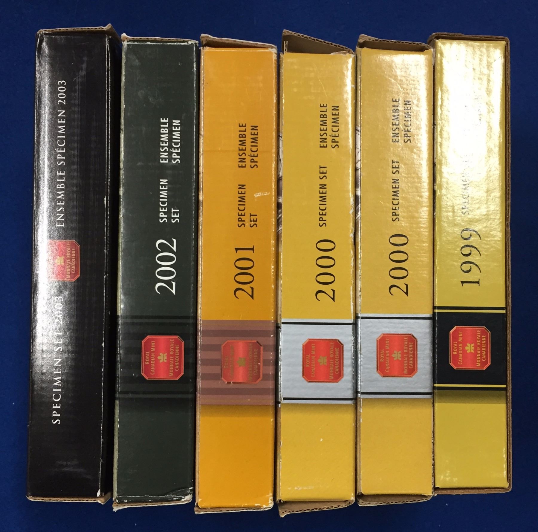 Canada 1999 to 2003 Specimen Sets. Includes both varieties of 2000. 6 sets included.