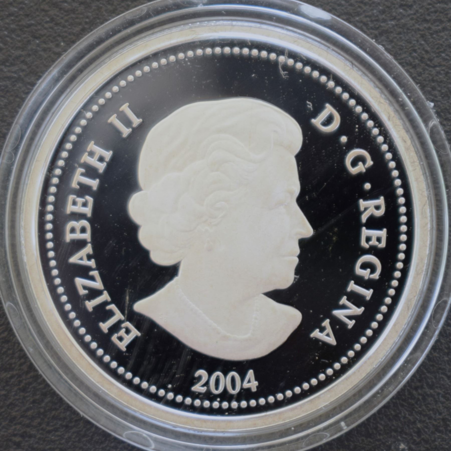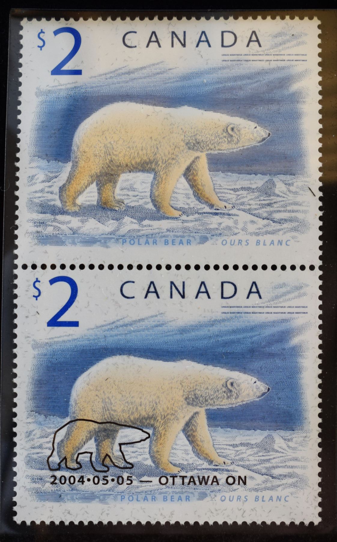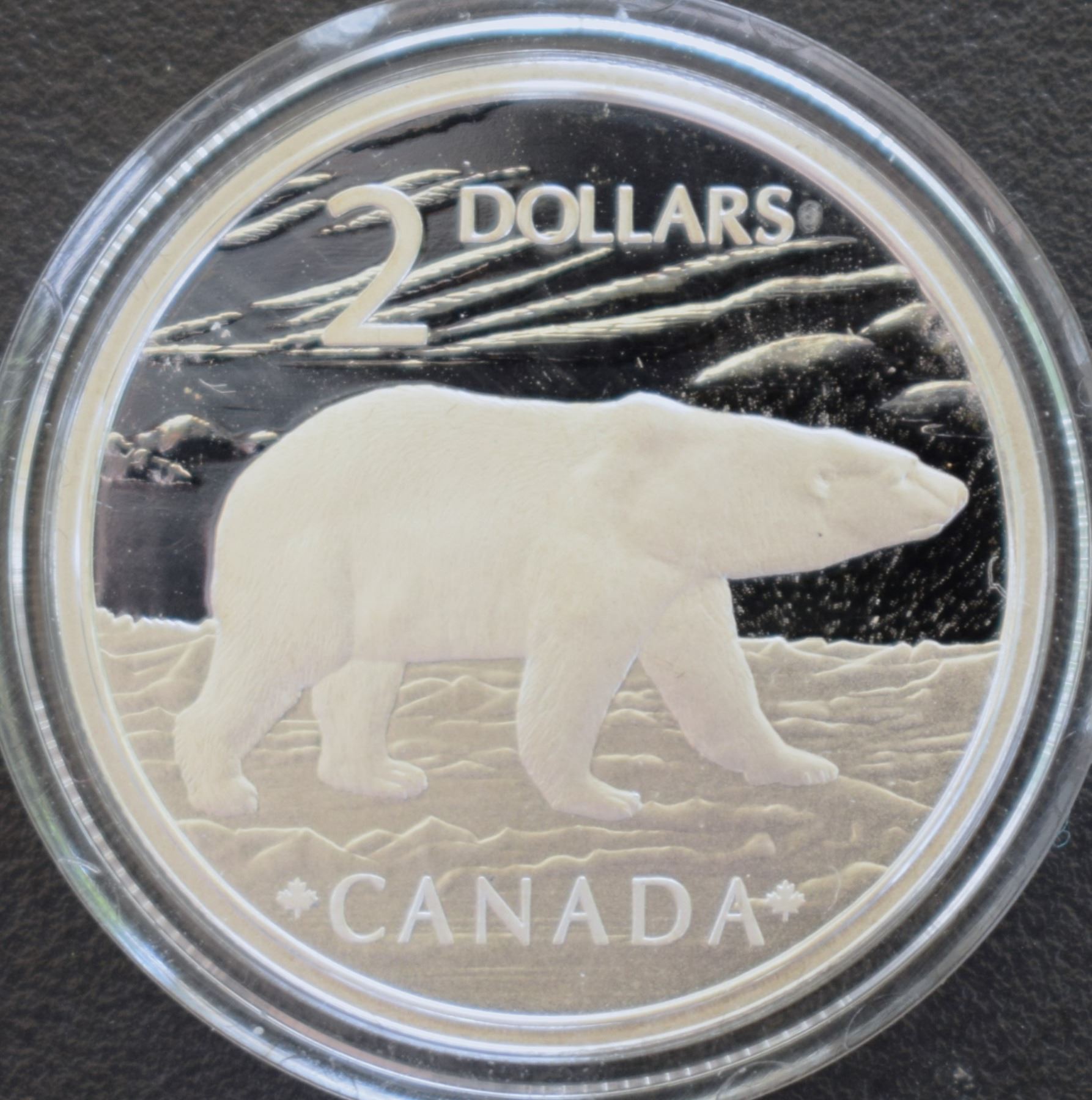 Canada, 2$ 2004 pair of 2$ Stamps and Proof 2$ .9999 Coin Set "The Proud Polar Bear" Limited Ed. in Wooden Box Original Presentation Impecable Scarse.