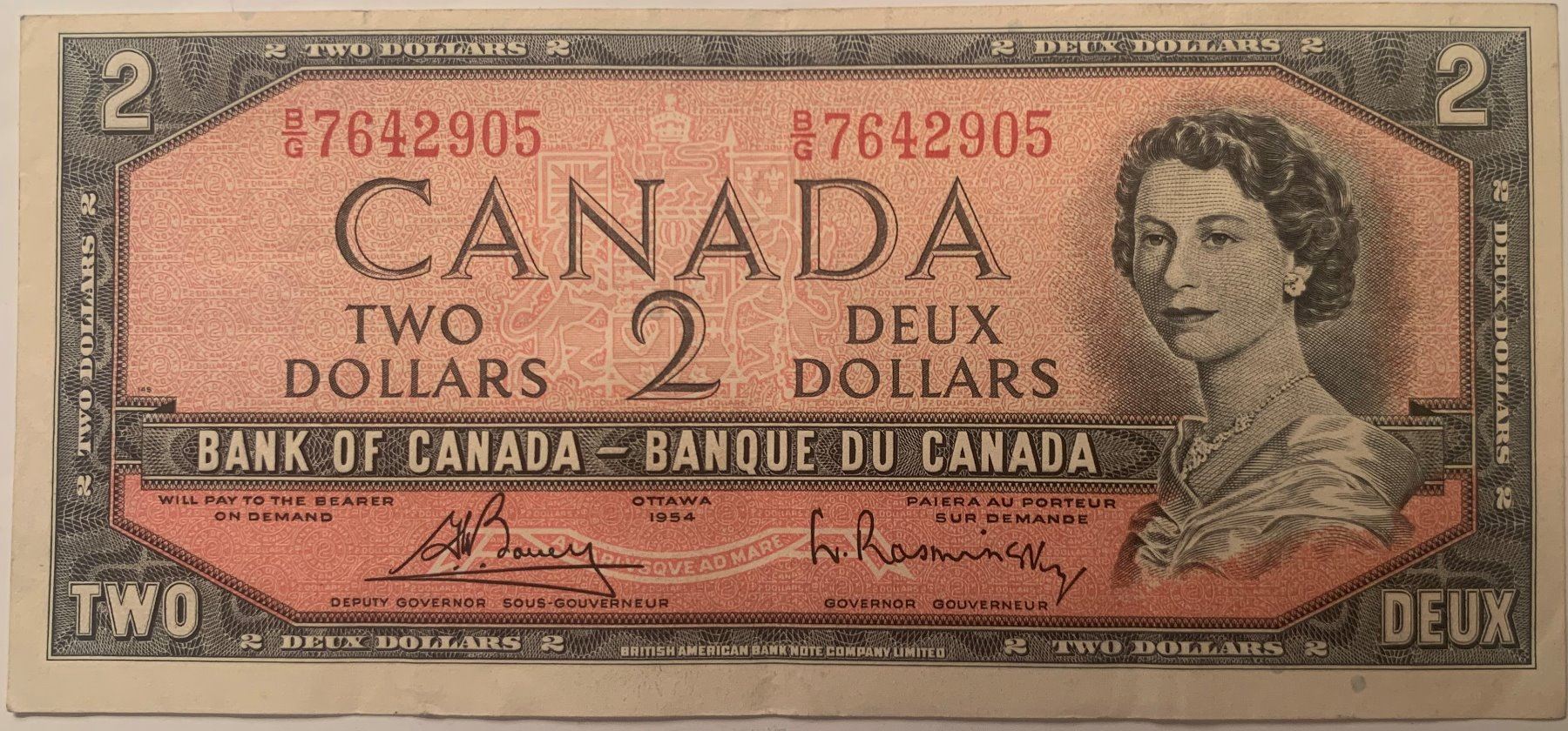 Canada 2 Dollars 1954 Bank of Canada $2 BC-38c Bouey Rasminsky