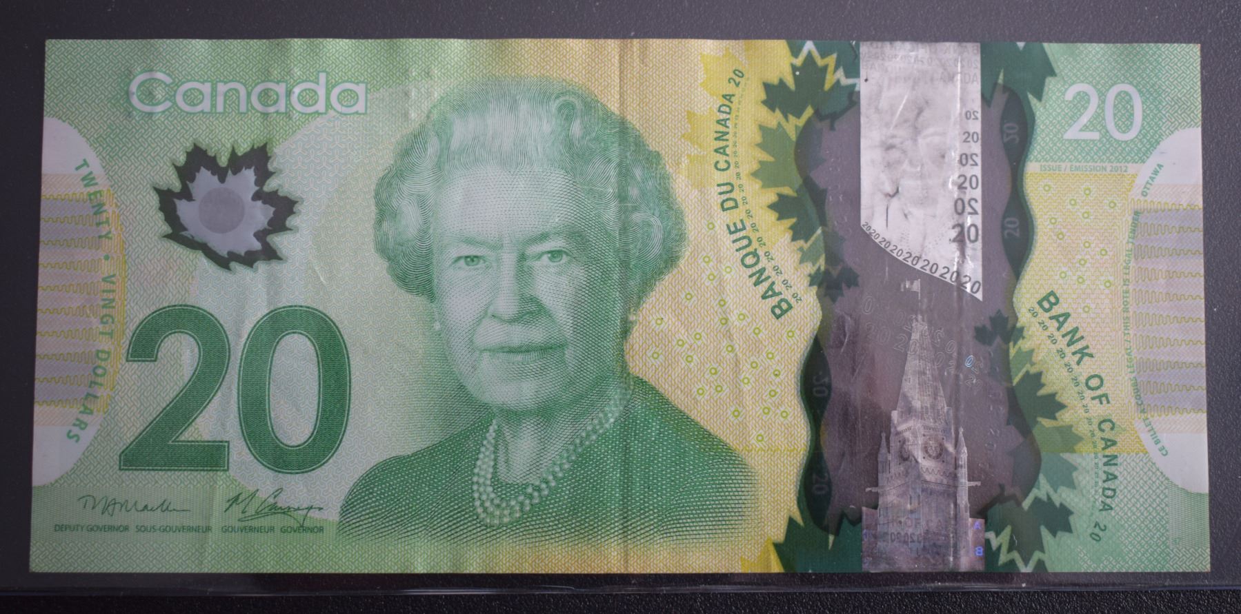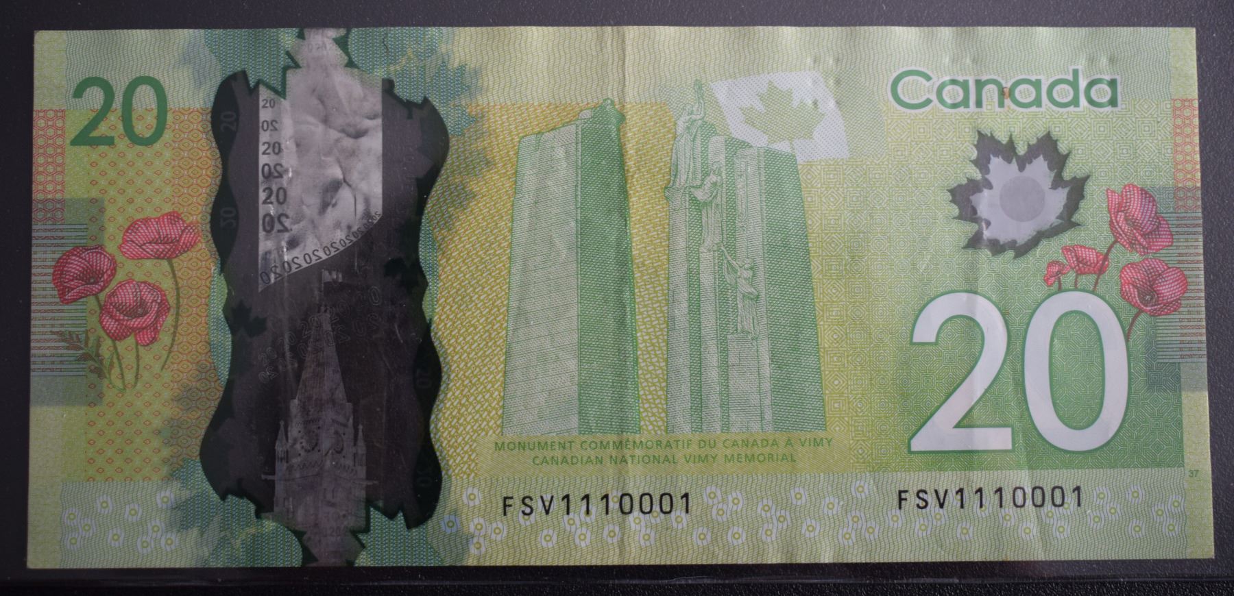Canada, 20$ 2012 "Binary Note" Serial # FIU-1110001 VF+ QEII