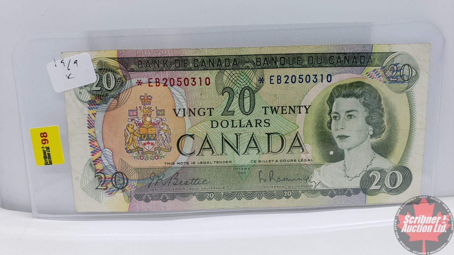 Canada $20 Bill 1969 *Replacement : Beattie/Rasminsky *EB2050310 (See Pics for Signatures/Serial Numbers)