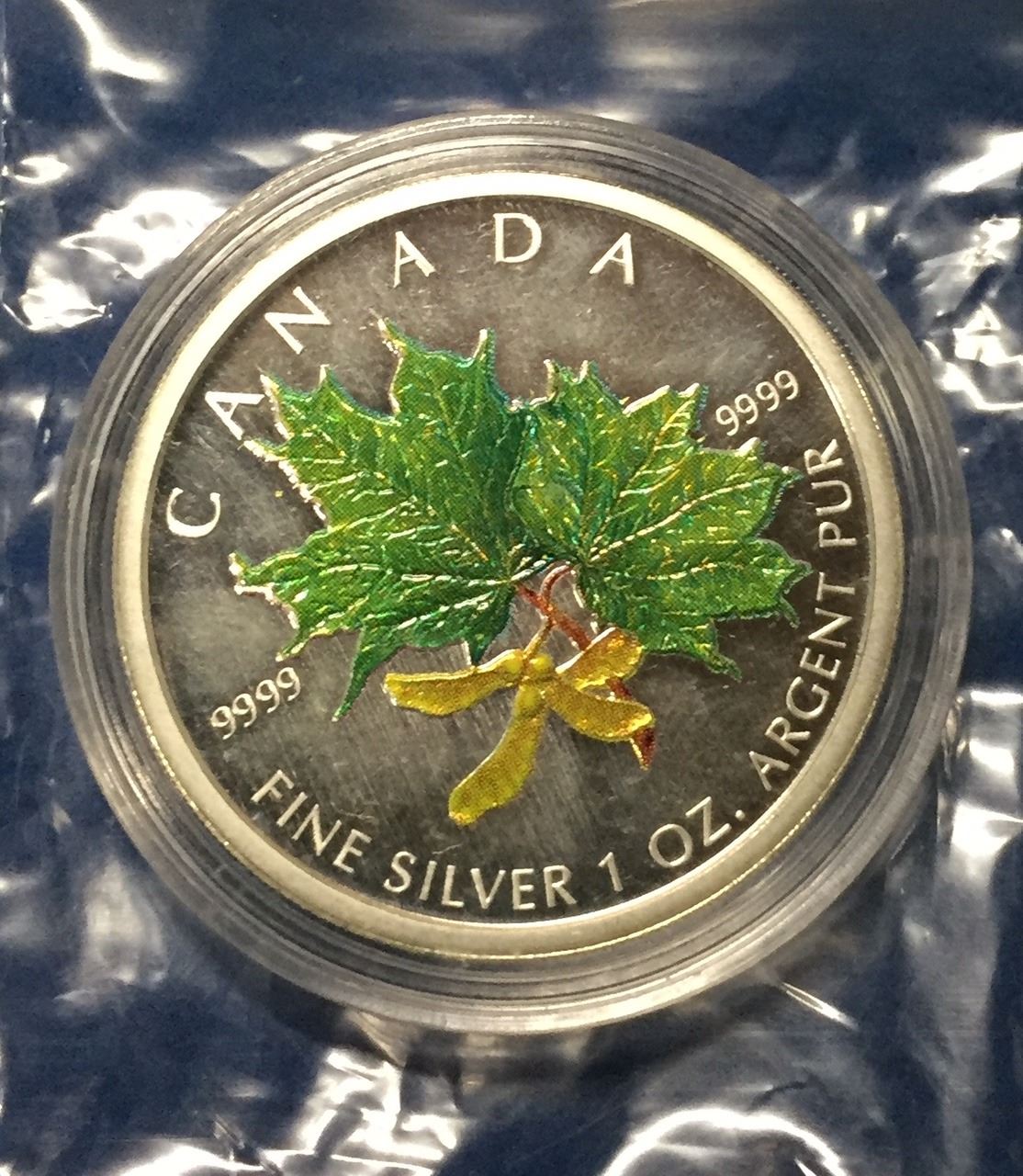 Canada 2002 $5 Green Coloured Silver Maple Leaf Coin Spring - In capsule only
