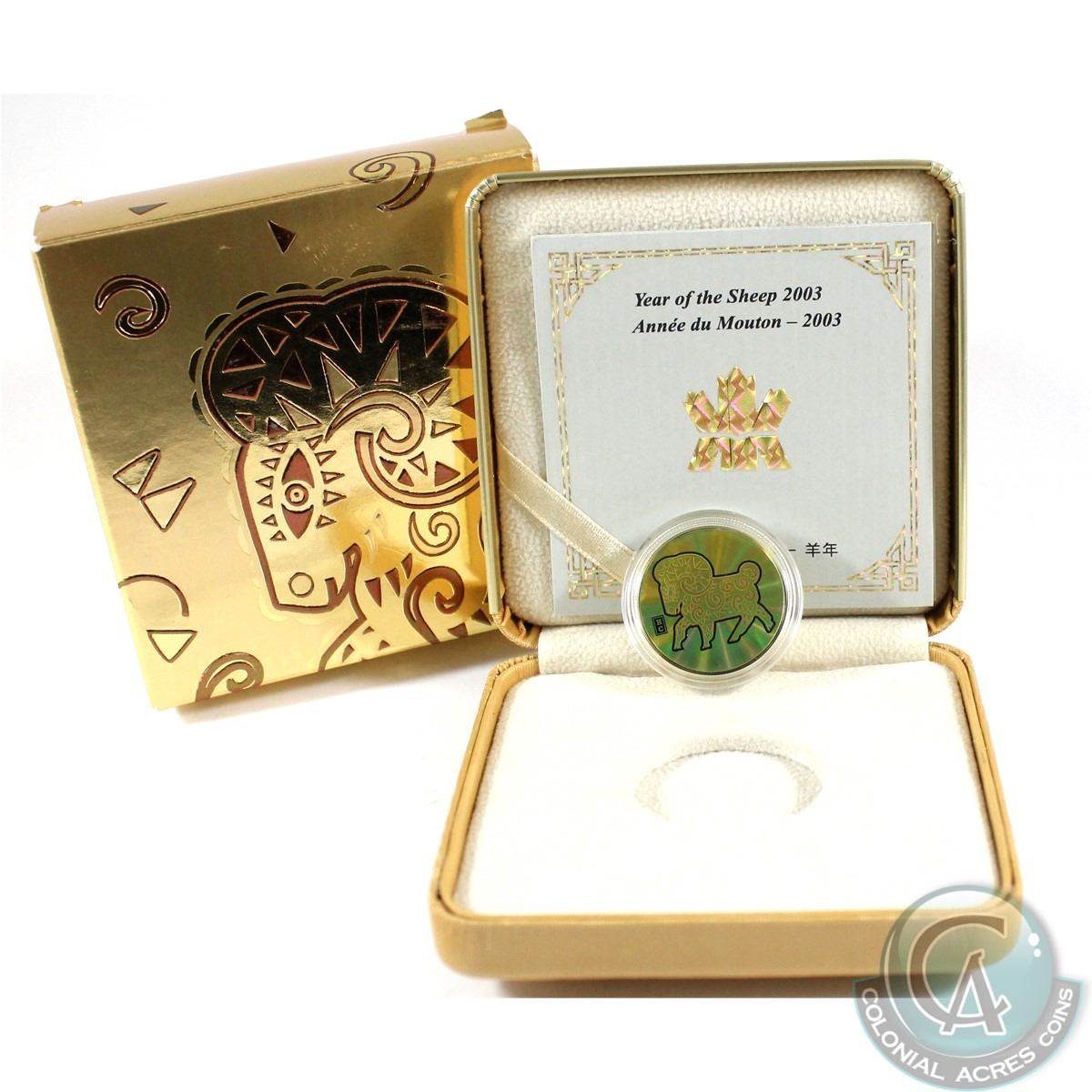 $150 2003 18K Gold Hologram Year of the Sheep in Original Mint Packaging. Coin contains 0.3280 oz of pure gold.