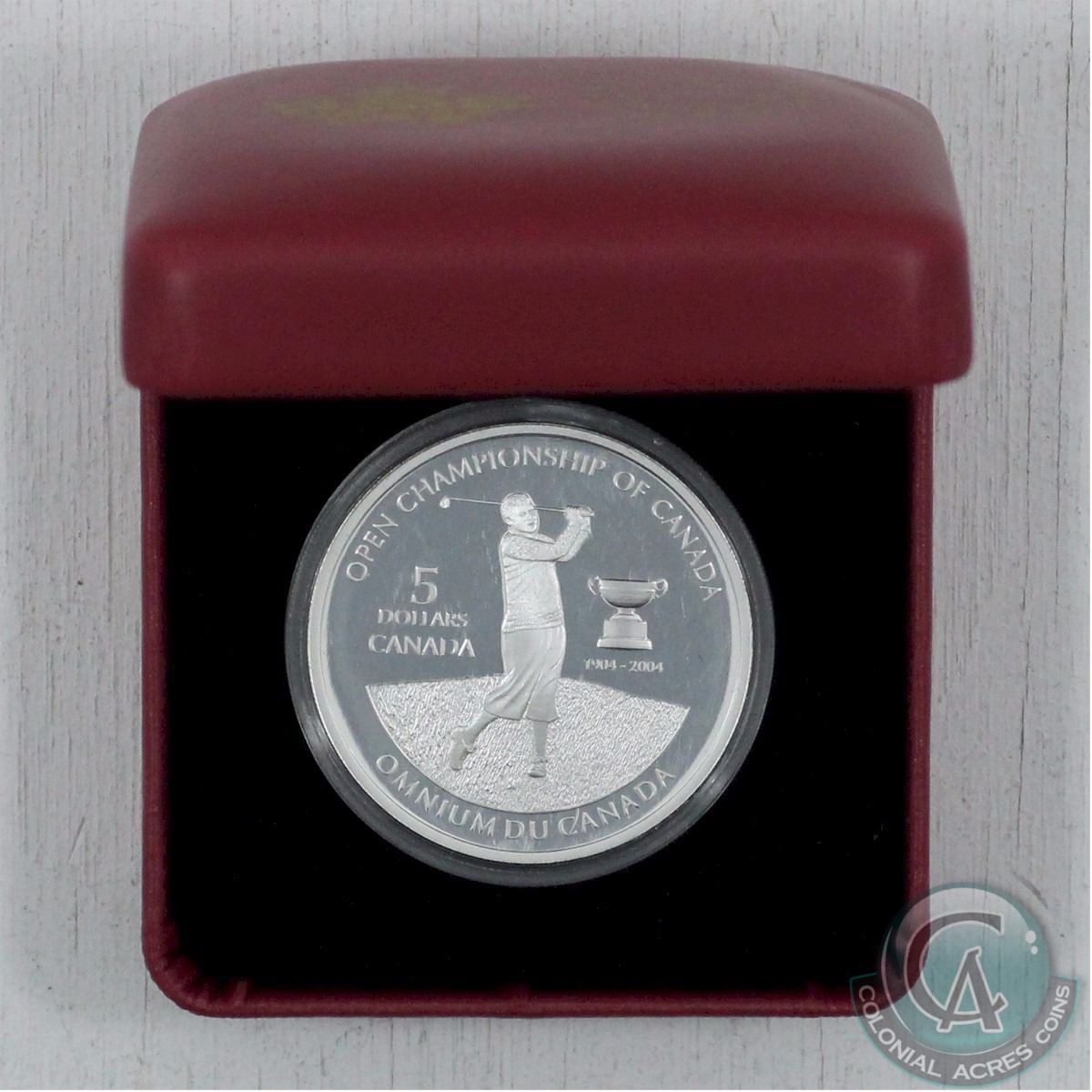 1904-2004 Proof Golf Open Championship $5 Pure Silver Commemorative Coin from the Royal Canadian Mint. This Coin is .9999 Pure Silver (has exactly 0.9 ounces of Silver; comes encapsulated with Display Box.)