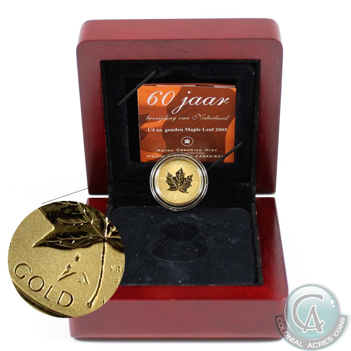 Canada 2005 1/4oz Reverse Proof Tulip Privy Mark Gold Maple Leaf. 9999 Pure (Tax Exempt). Coin comes in Original Mint box with COA. Very Low Mintage!