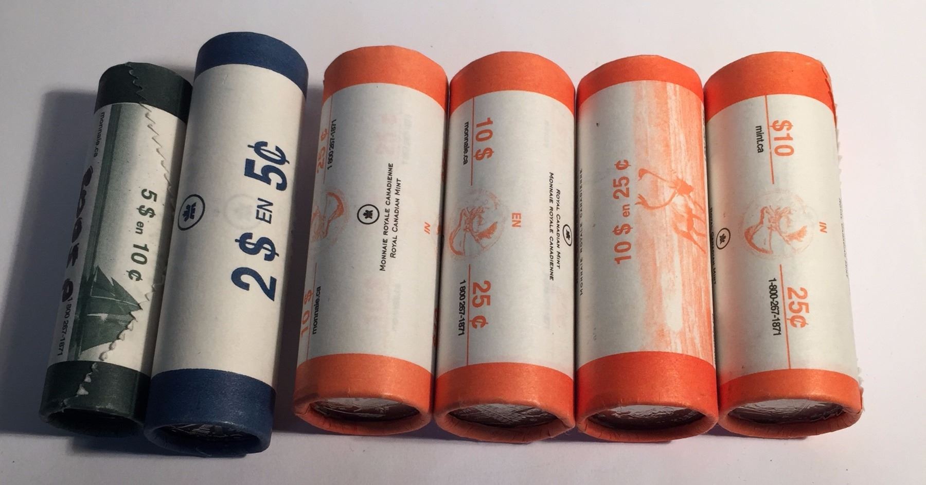 Canada 2005 Rolls 5c Victory, 10c P, 25c Caribou P, 25c Veterans, 25c Alberta, 25c Saskachewan ($47 Face Value)