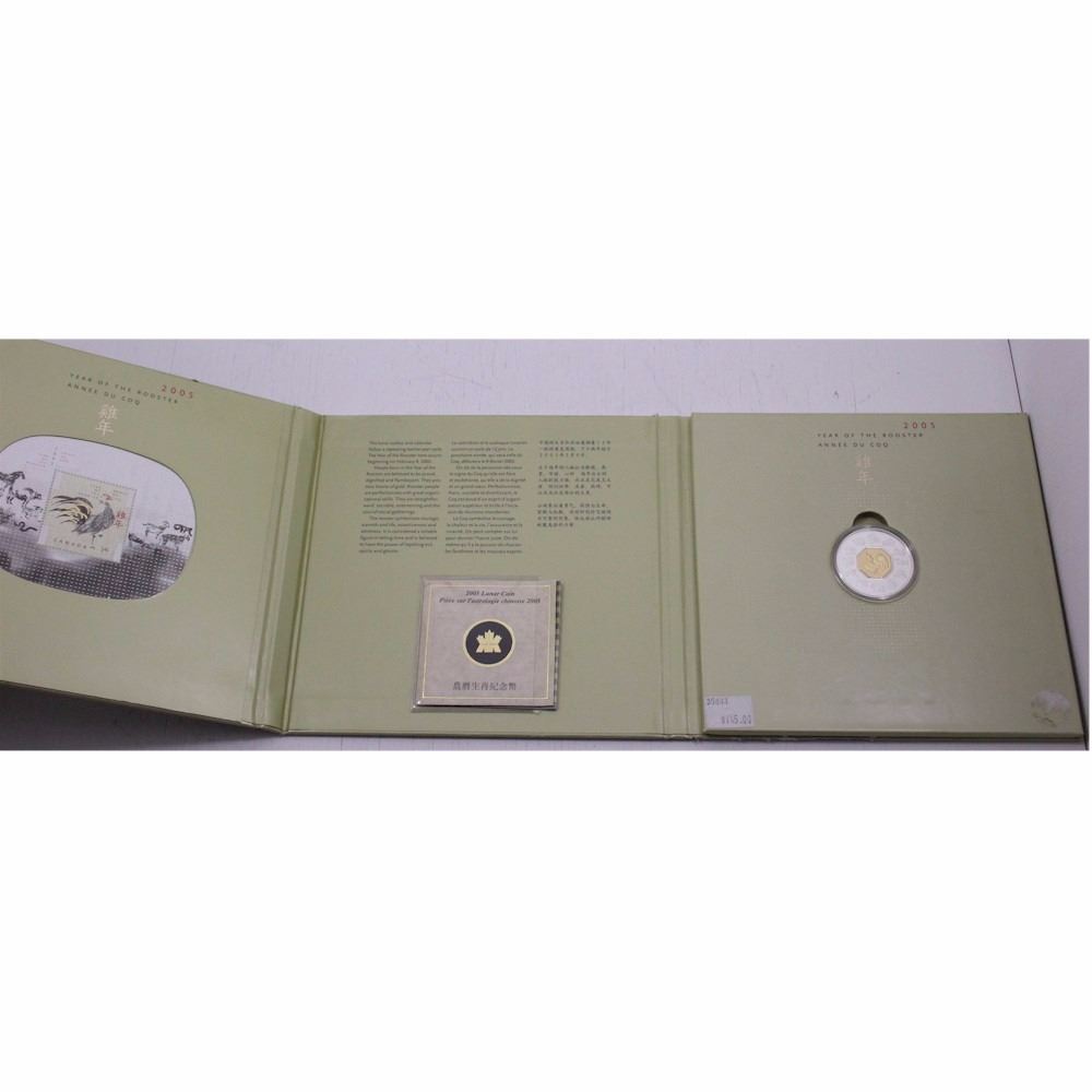 Canada 2005 Rooster Silver $15 Coin and Stamp set from the RCM and Canada Post. Coin comes encapsulated with certificate and display folder, however the folder is tattered and worn.