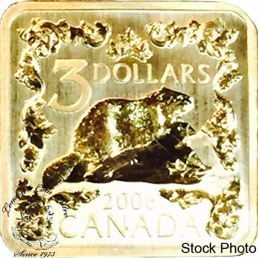 Canada 2006 $3 Beaver Gold Plated Silver Square Coin