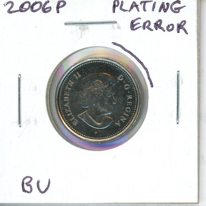 Canada 2006P Nickel 5 Cents Obverse Plating Error. Neat Error. BU.