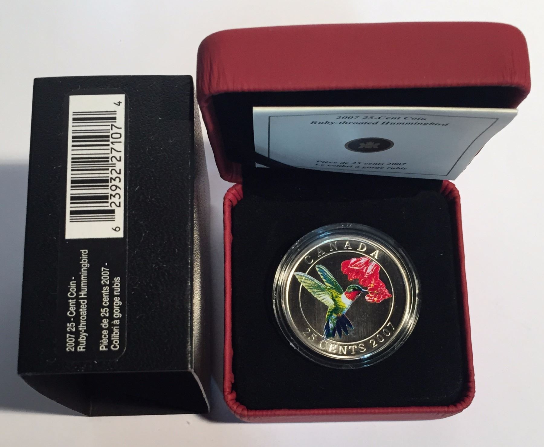 Canada 2007 25 Cents Ruby-throated Hummingbird Coloured Coin