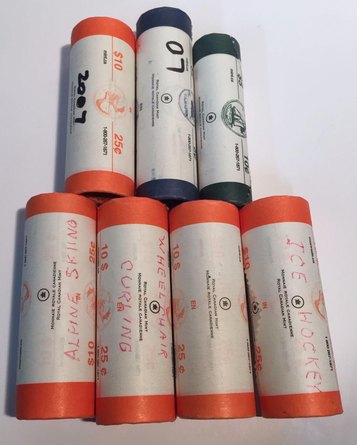 Canada 2007 Rolls 5c, 10c, 25 Caribou, Biathlon, Alpine Skiing, Wheelchair Curing, Ice Hockey ($57 Face Value)