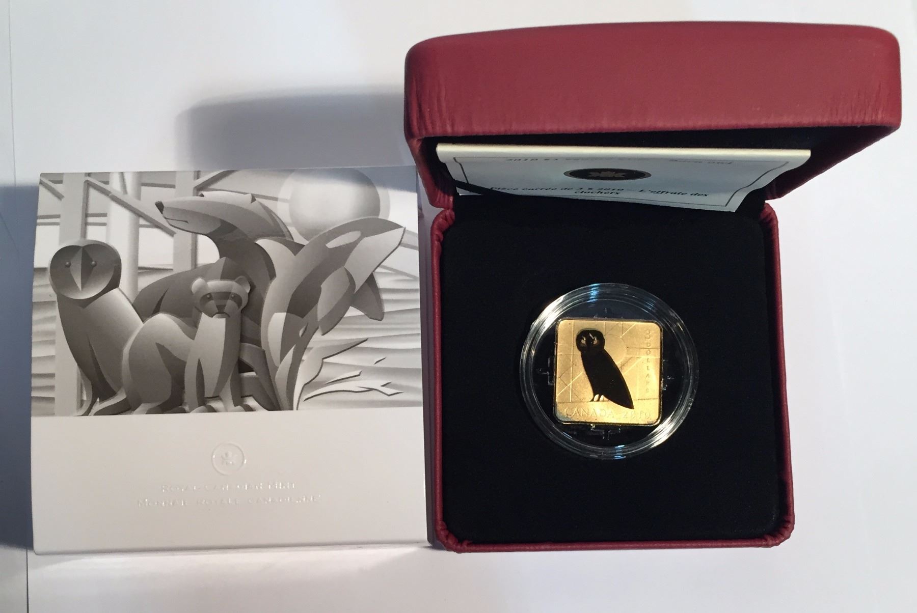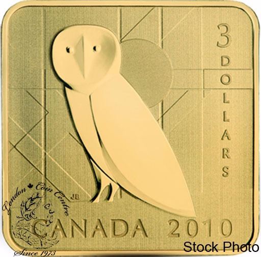 Canada 2010 $3 Barn Owl Square Sterling Silver Gold Plated Coin TONED