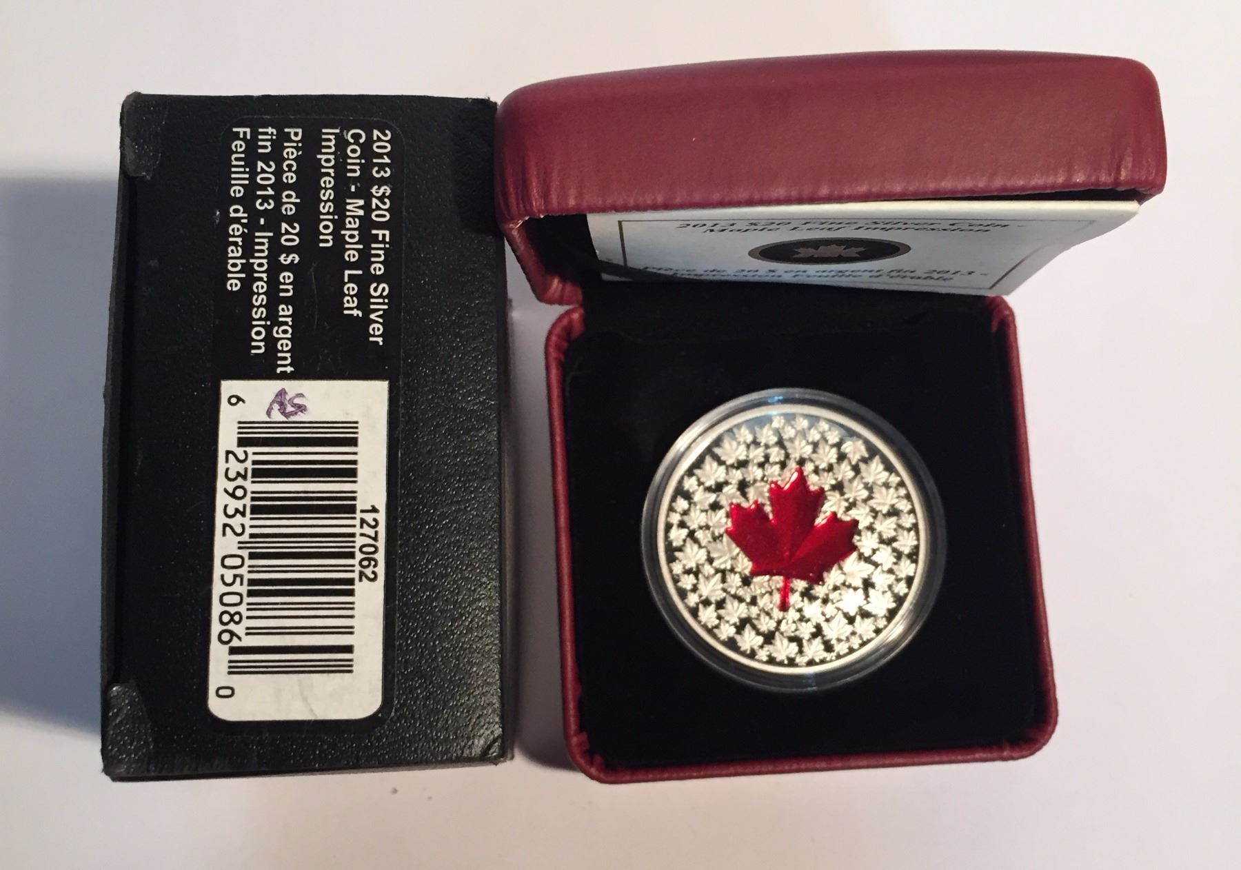 Canada 2013 $20 Maple Leaf Impression Pure Silver Red Coloured Coin