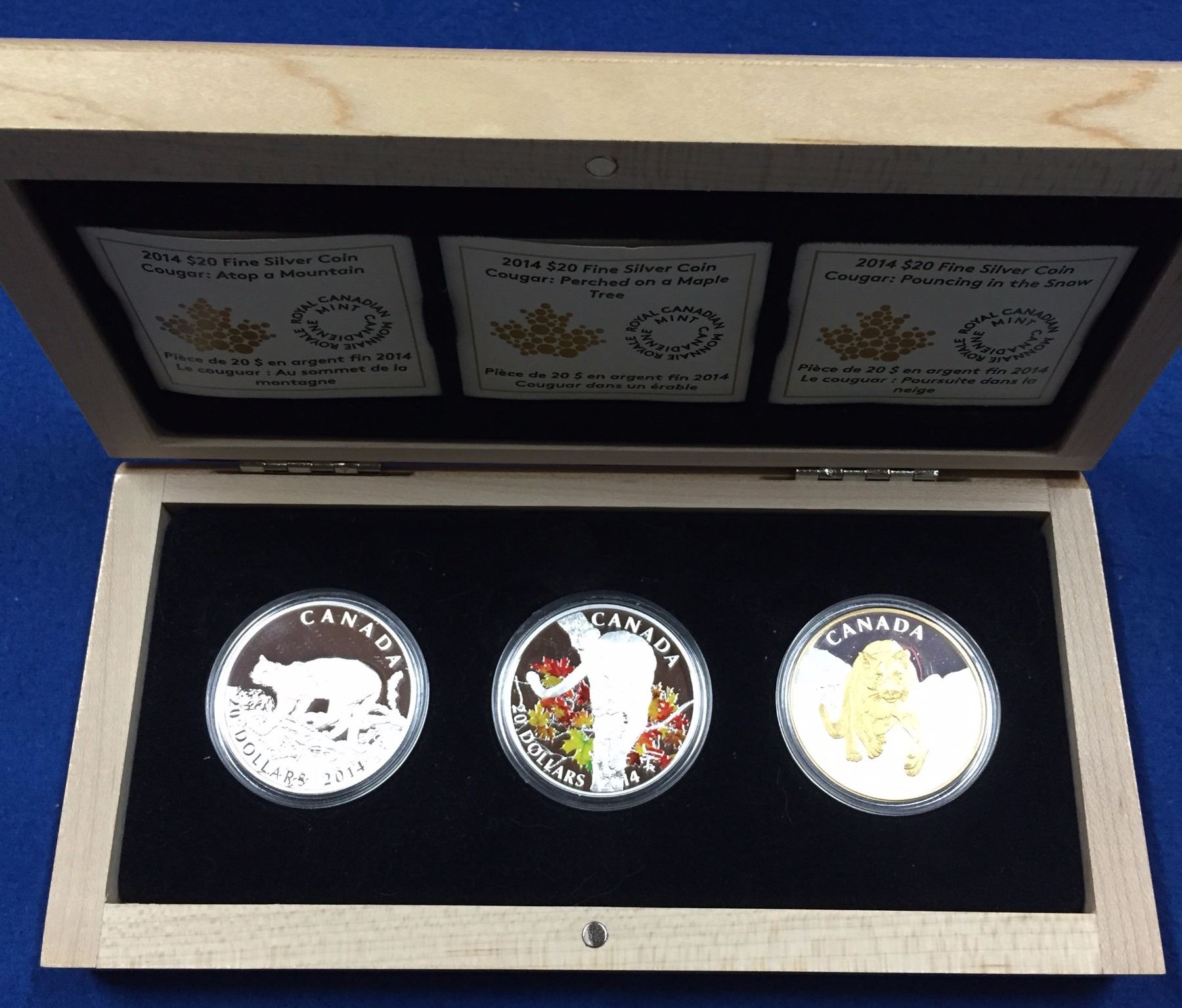 Canada 2014 $20 Cougar 3 Coin Set in Wooden Display