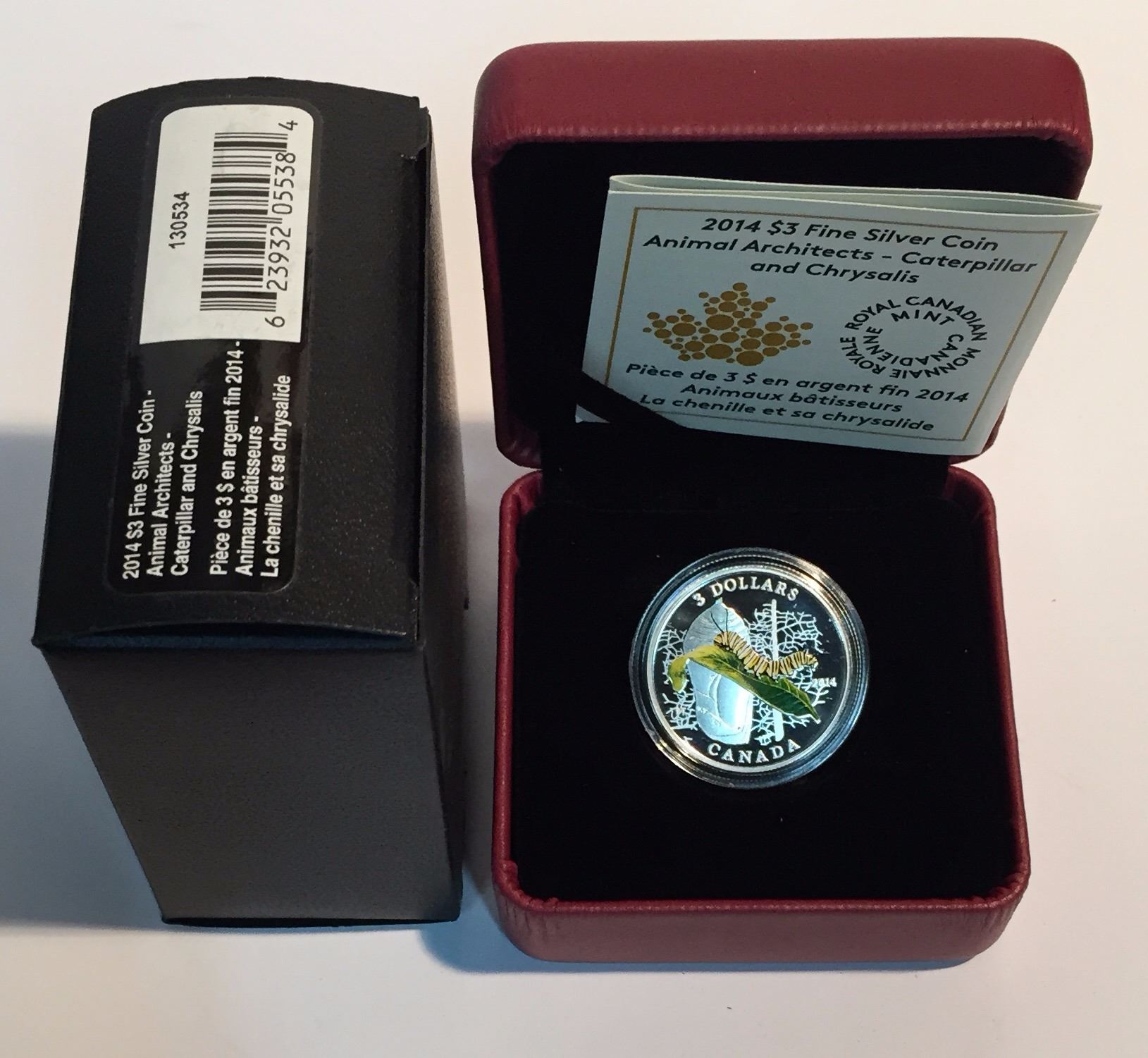 Canada 2014 $3 Animal Architects: Caterpillar and Chrysalis Pure Silver Coin