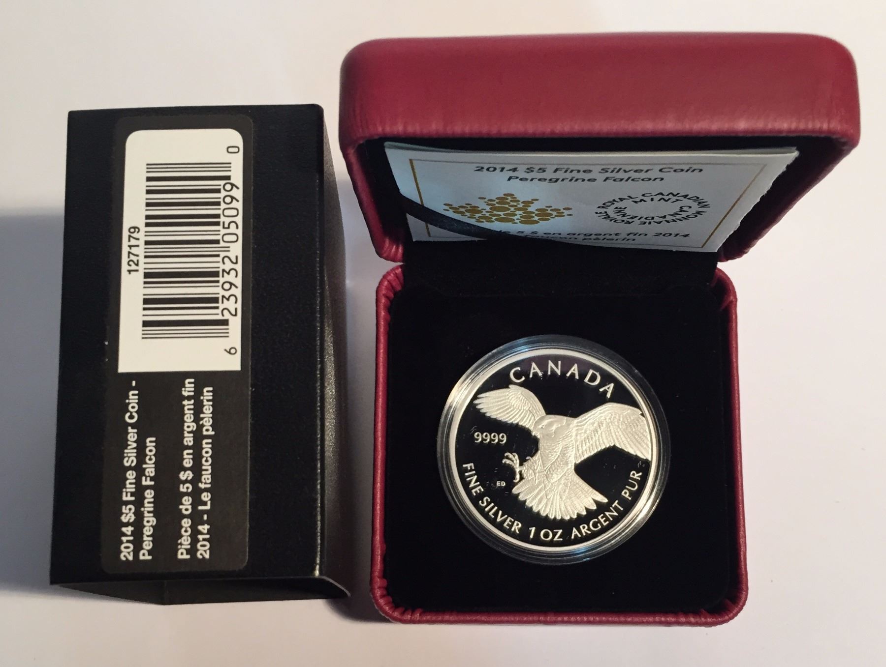 Canada 2014 $5 Peregrine Falcon 1 oz Pure Silver Proof Coin
